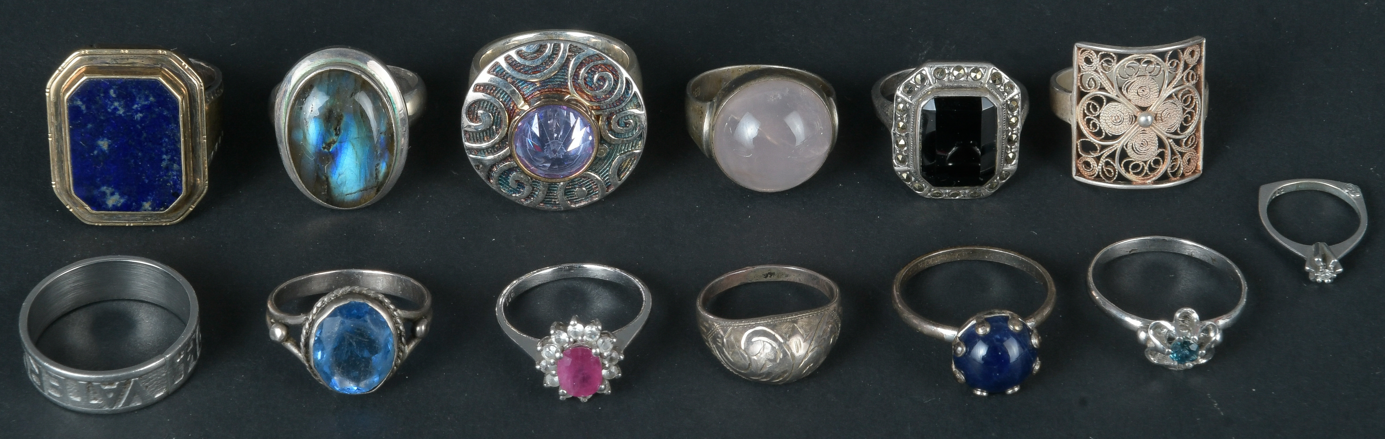 - Katalog-Nr: 611Konvolut Silber-Ringe mit Steinbesatz, Gesamtgewicht ca. 70 g, Ringgröße 40 bis 61.o.L.
