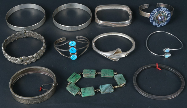 - Katalog-Nr: 609Konvolut Armbänder und -reife. Silber, ca. 200 g, teilw. mit Steinbesatz.o.L.