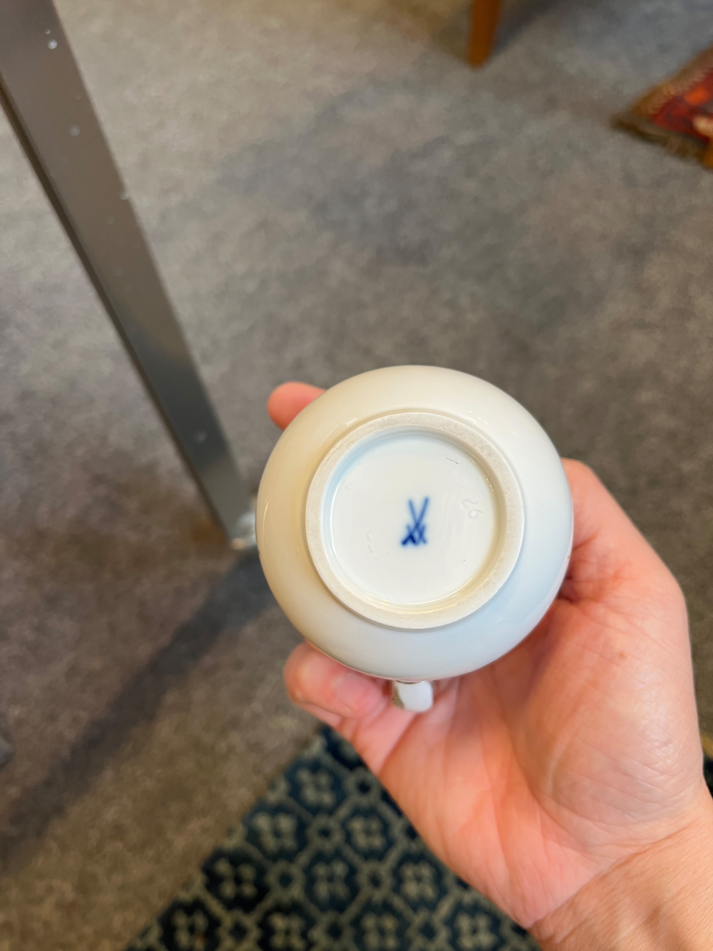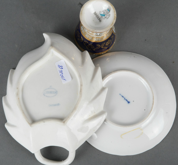 - Katalog-Nr: 638Siebentlgs. Konvolut, u.a. Berlin / Stadt Meissen 20. Jh. Porzellan, bunt bemalt. Bestehend aus: Eine Figur als Allegorie des „Sommer“ (H=11,4 cm), ein Eierbecher (H=6 cm), ein Paar Blattschalen (H=je 4,5 cm, B=je 14 cm, T=je 11,5 cm), zwei Mokkatassen mit Untertassen und eine Eule (H=6,5 cm).o.L.