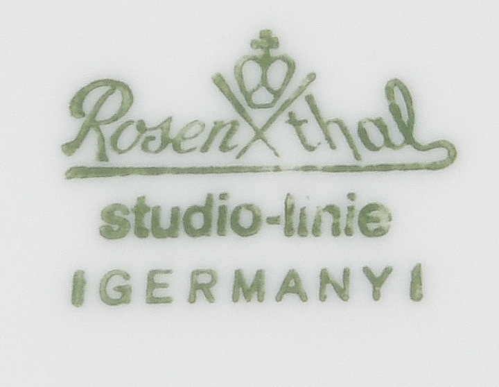 - Katalog-Nr: 66525-tlgs. Service „Suomi Anthrazit“. Rosenthal 1976. Bestehend aus: Eine Kanne mit beweglichem Metallbügel (H=21 cm), acht Kaffeetassen und sechs Teetassen mit zwölf Untertassen, acht Kuchenteller (D=je 21 cm), eine Kuchenplatte (29,5 x 29,5 cm) und eine Anbietplatte (36 x 17,5 cm). Porzellan mit platinfarbenem Rand, Entwurf von Timo Sarpaneva. (berieben / best.)o.L.