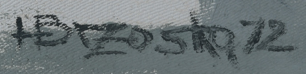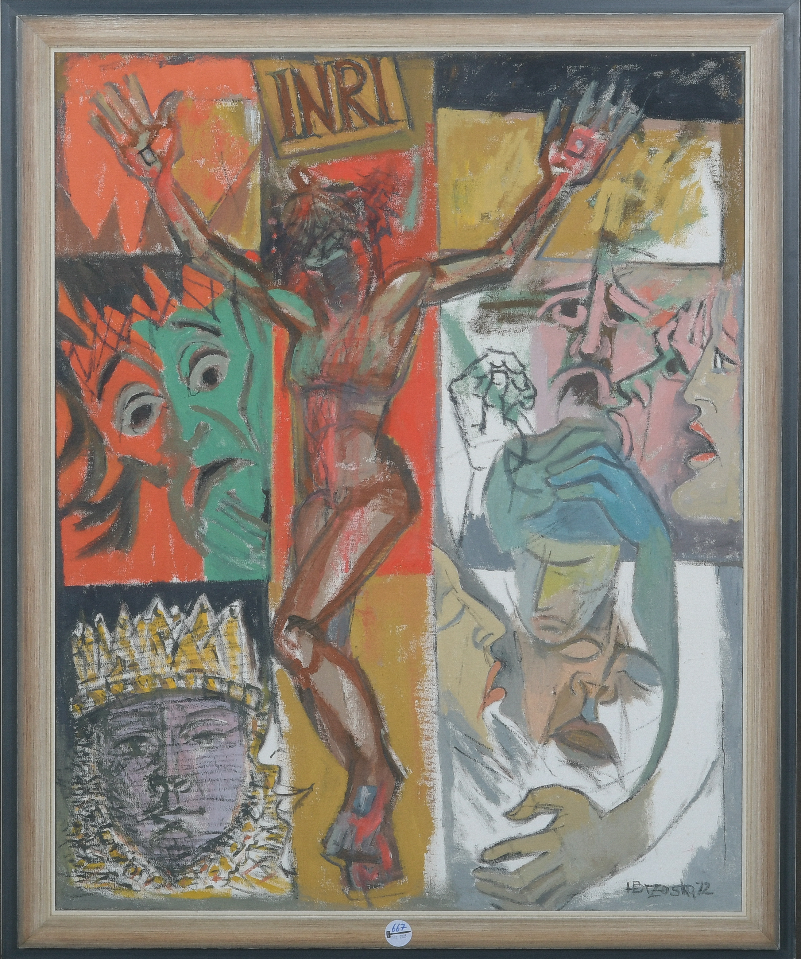 - Katalog-Nr: 667Heinz Brzoska (1942-2015). Komposition mit christlichen Motiven. Öl/Lw., re./u./sign./dat. (19)72, gerahmt, 105 x 80 cm. Dazu Katalog „Heinz Brzoska Bilder Zeichnungen“, Speyer 2007.o.L.