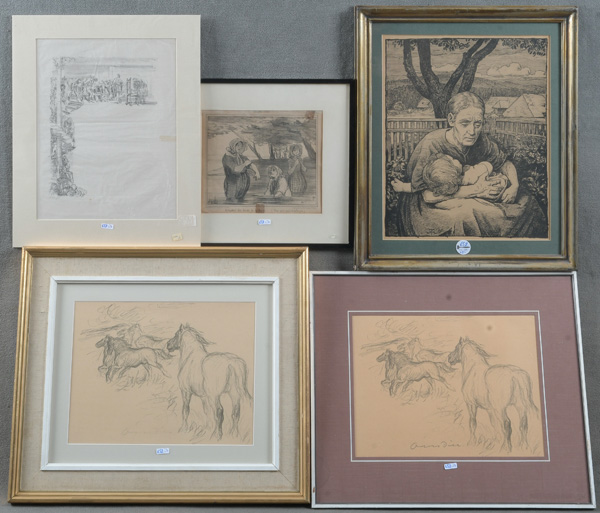 - Katalog-Nr: 652Honoré Daumier (1808-1879) / Max Slevogt (1868-1932) / Hans Thoma (1839-1924) u.a. Konvolut Holzschnitte und Lithographien mit Pferdedarstellungen, Personen in Landschaft und Mutter mit Kind, re./u./monogr., eines dat. (18)96, mit Passepartout hi./Gl. gerahmt, 19 x 23 bis 42,5 x 34 cm.o.L.
