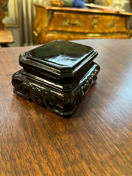 - Katalog-Nr: 664Vier unterschiedliche Kleinkunstobjekte. Deutschland / Griechenland 19./20. Jh. Bestehend aus: Ein Holzetui mit Fischhautummantelung (H=17,5 cm, B=7,5 cm, T=4,4 cm), eine runde Holzdose (H=7 cm, D=7,8 cm), eine runde Bronzemedaille (D=7,6 cm) und eine Gürtelschließe mit Miniatur (10,3 x 8,6 cm).o.L.