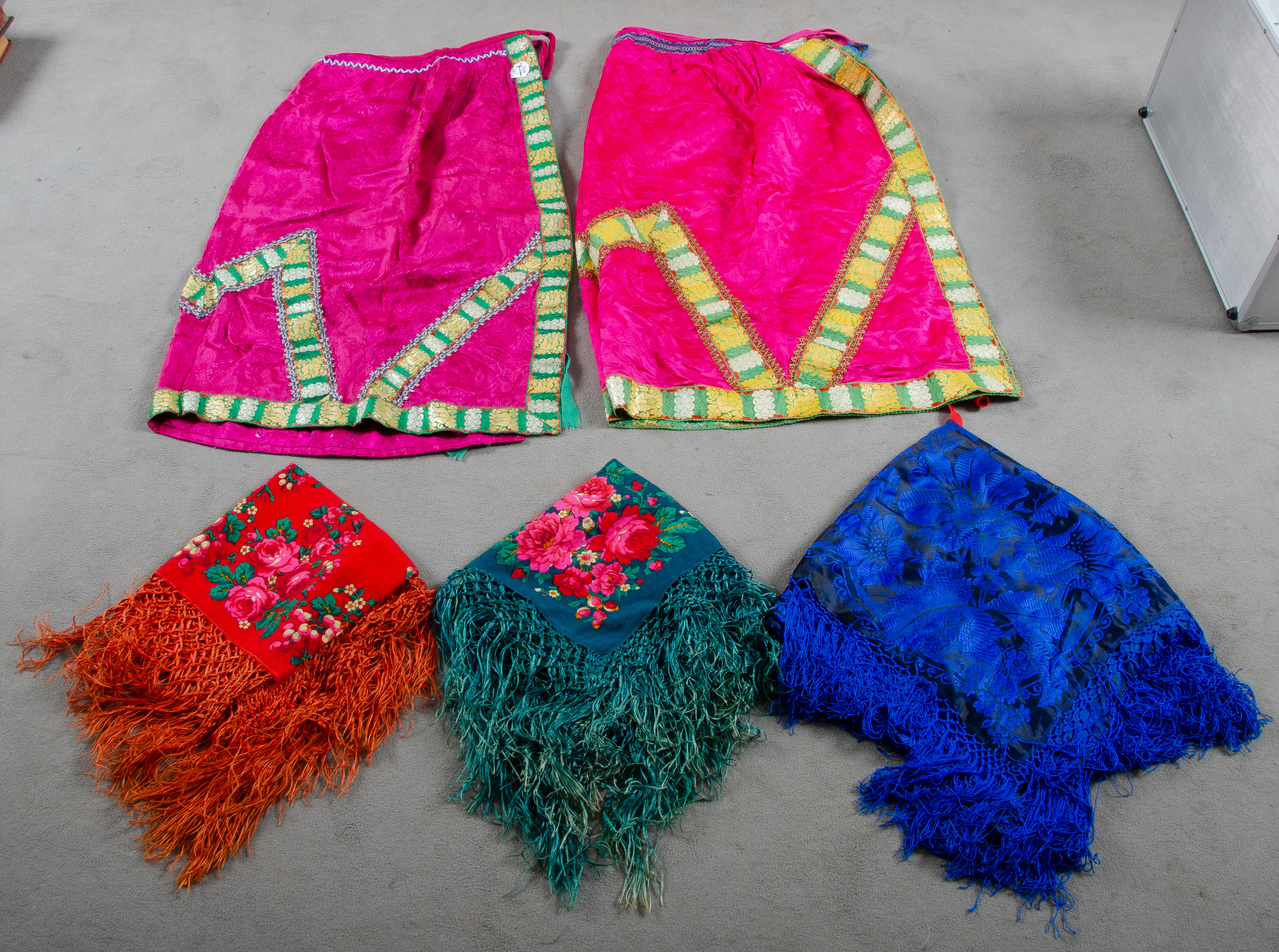 - Katalog-Nr: 704Drei Trachtenschals und zwei -schürzen, teilw. bunt bestickt mit Blumenmustern.o.L.