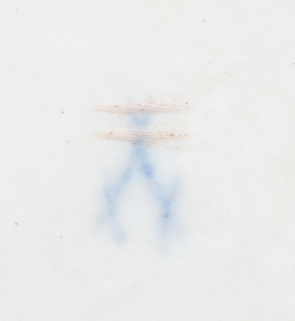- Katalog-Nr: 99Zierei auf hohen geschweiften Beinen. Berlin um 1900. Porzellan, exzellent bunt floral bemalt in Weichmalerei; am Boden unterglasurblaue Szeptermarke mit einem Schleifstrich, H=13,3 cm.o.L.