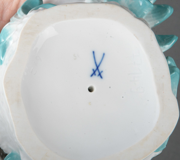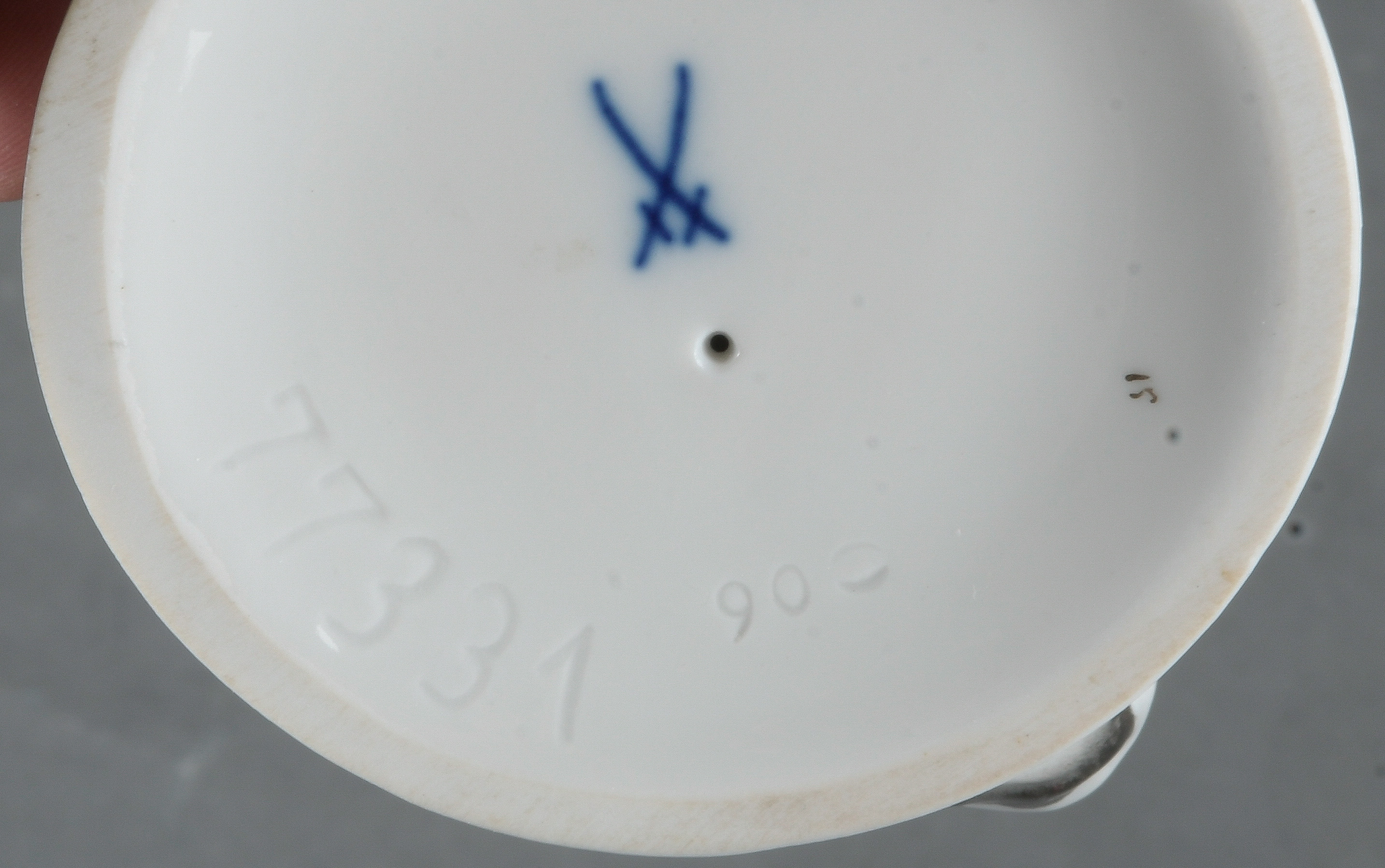 - Katalog-Nr: 801Drossel. Meissen 20. Jh. Porzellan, naturalistisch modelliert und staffiert; am Boden unterglasurblaue Schwertermarke, Modell nach Johann Joachim Kaendler, H=11,5 cm.o.L.