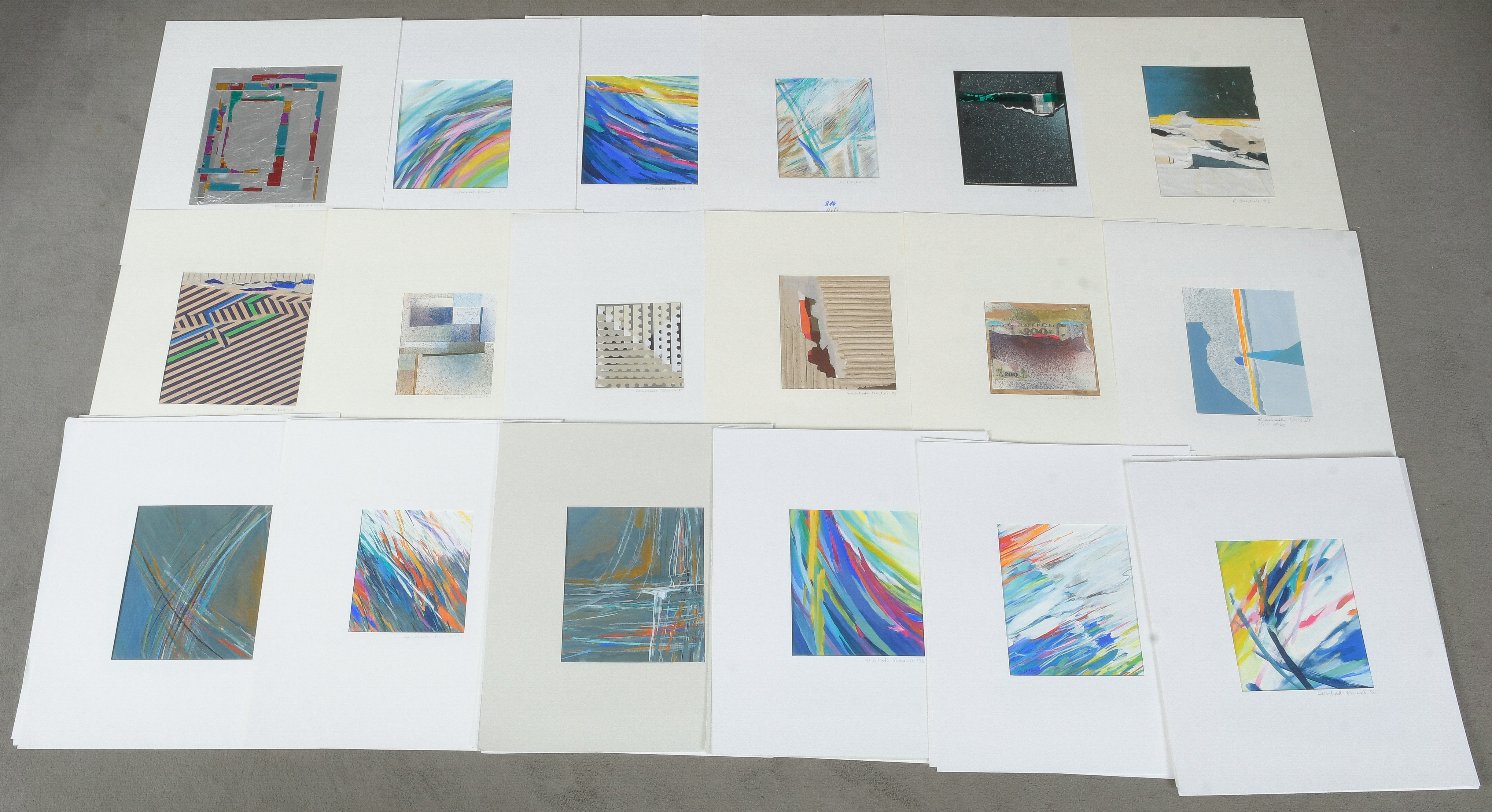 - Katalog-Nr: 814Elisabeth Reichert (1940-2012). Abstrakte Motive. 39 Collagen / Zeichnungen, re./u./sign./dat. 1993-1995, mit Passepartout, 17 x 14 bis 20 x 18 cm.o.L.