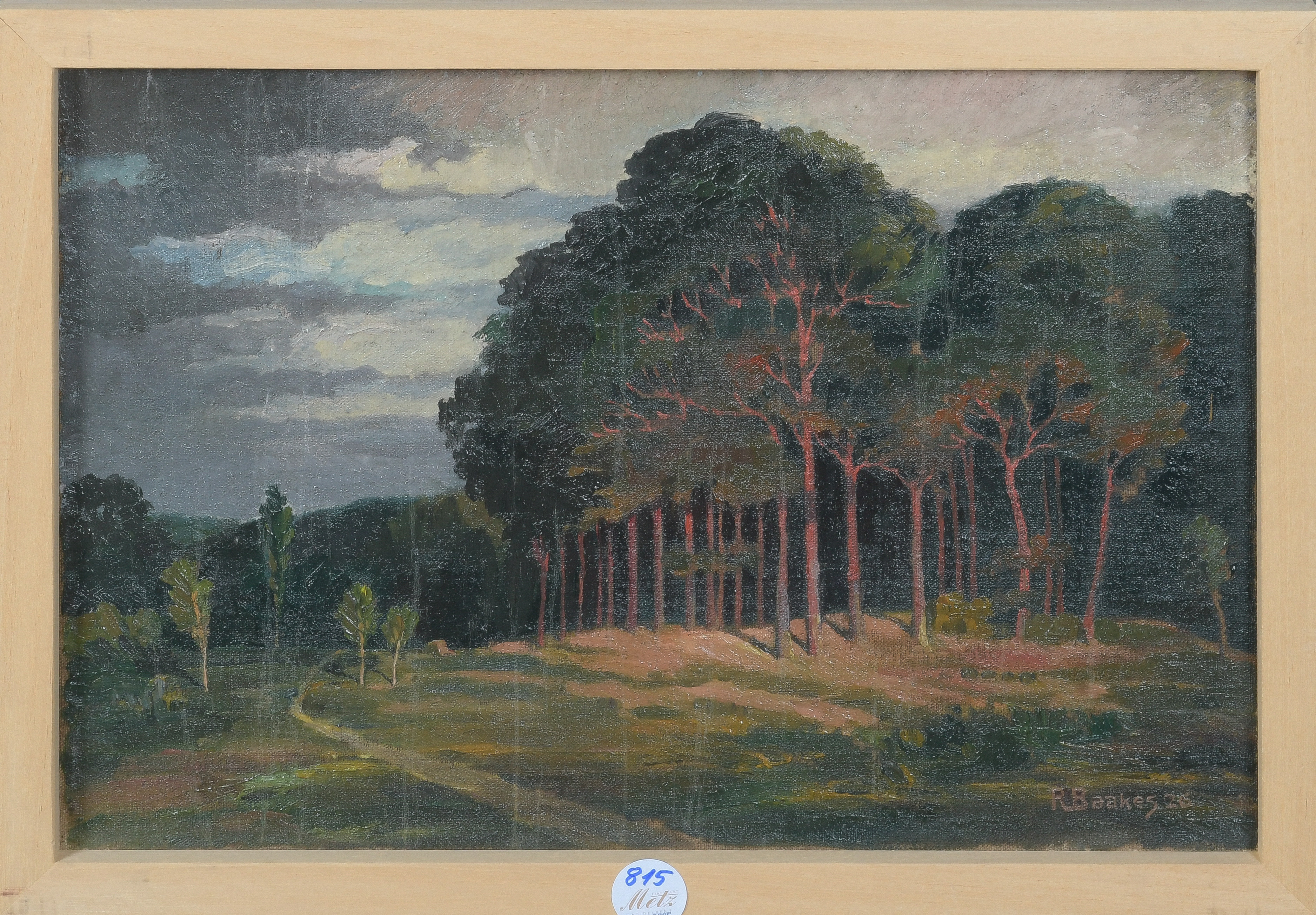- Katalog-Nr: 815R. Baakes (Maler des 19./20. Jhs.). Waldlandschaft, verso Feldlandschaft. Öl/Lw., re./u./sign./dat. 1926, gerahmt, 33 x 48 cm.o.L.