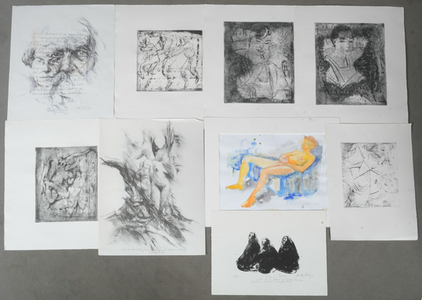 - Katalog-Nr: 813Hetty Krist (*1942) u.a. Neuntlgs. Konvolut Radierungen und ein Aquarell mit unterschiedlichen Motiven, teilw. re./u./sign., 19 x 28 bis 62 x 46 cm.o.L.
