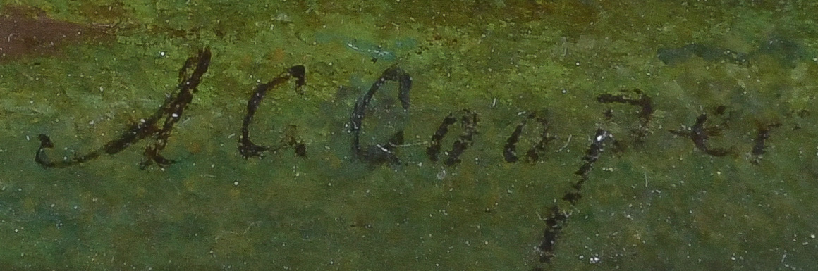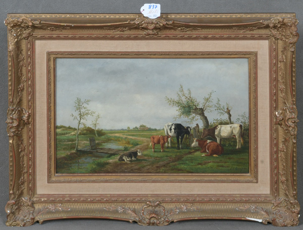 - Katalog-Nr: 837Thomas George Cooper (1836-1901). Kühe in Landschaft. Öl/Holz, re./u./sign., gerahmt, 25 x 39 cm.o.L.
