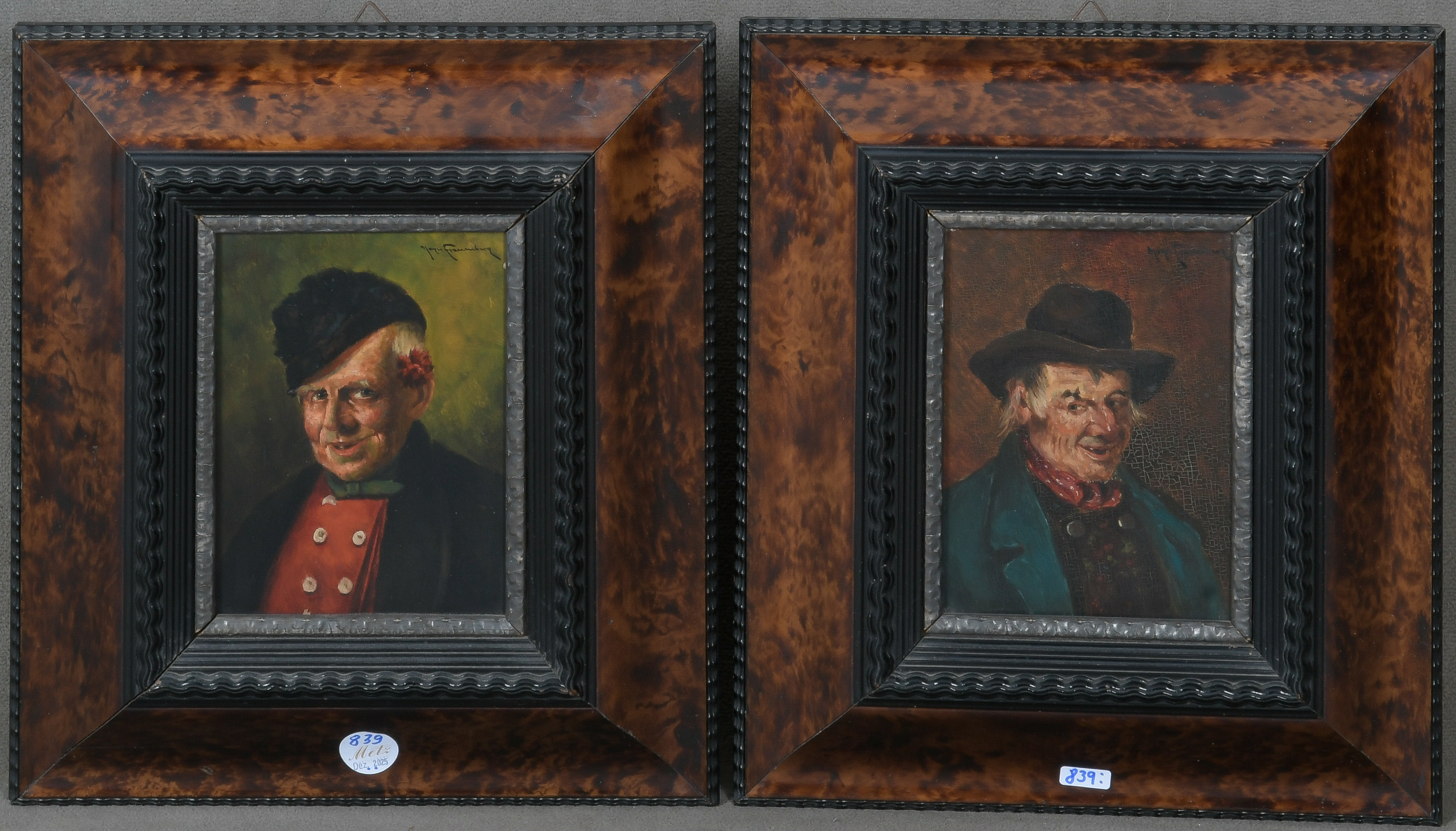 - Katalog-Nr: 839Ignaz Mayer-Frauenberg (1874-1932). Zwei Herrenporträts. Öl/Holz, re./o./sign., gerahmt, je 21 x 15,5 cm.o.L.