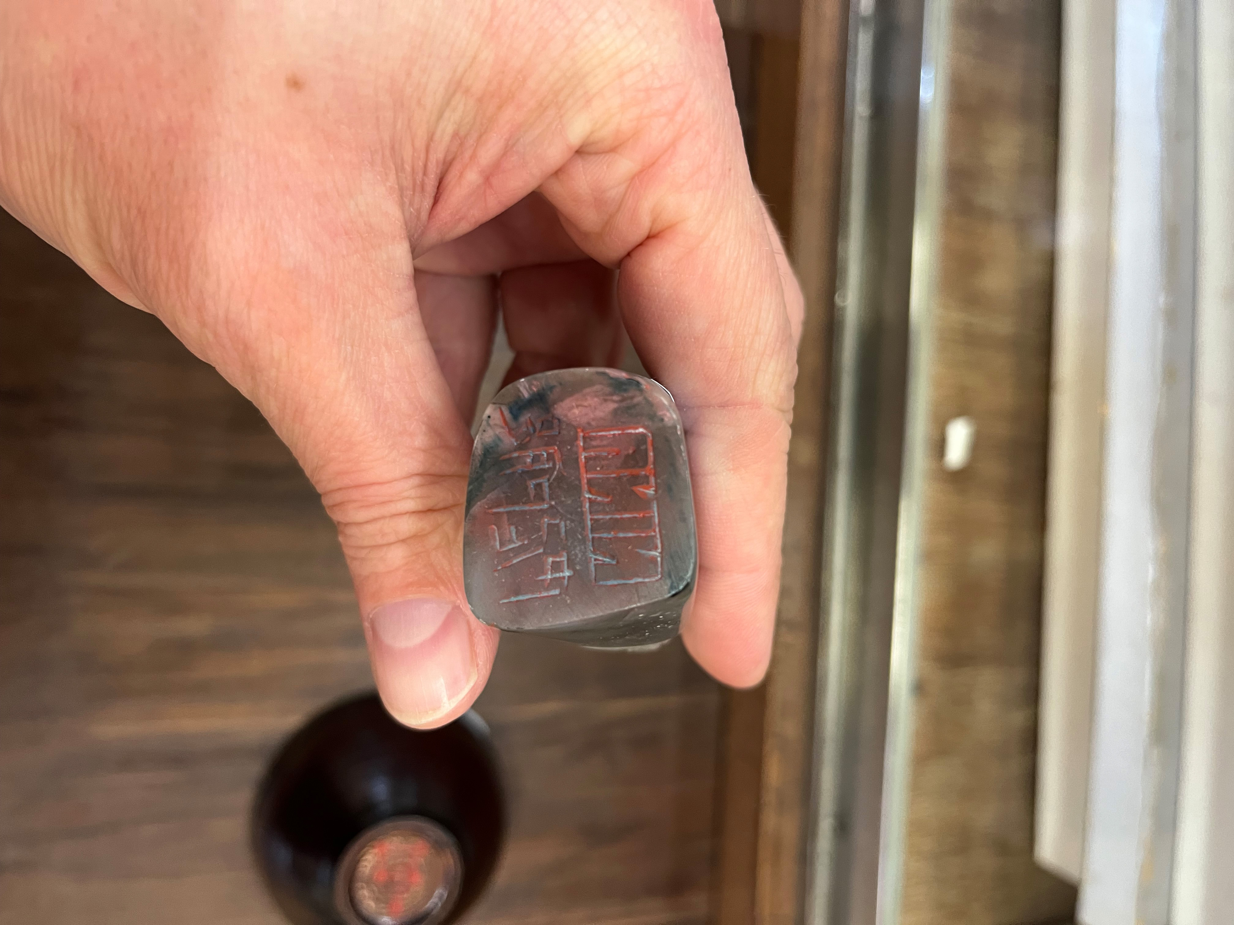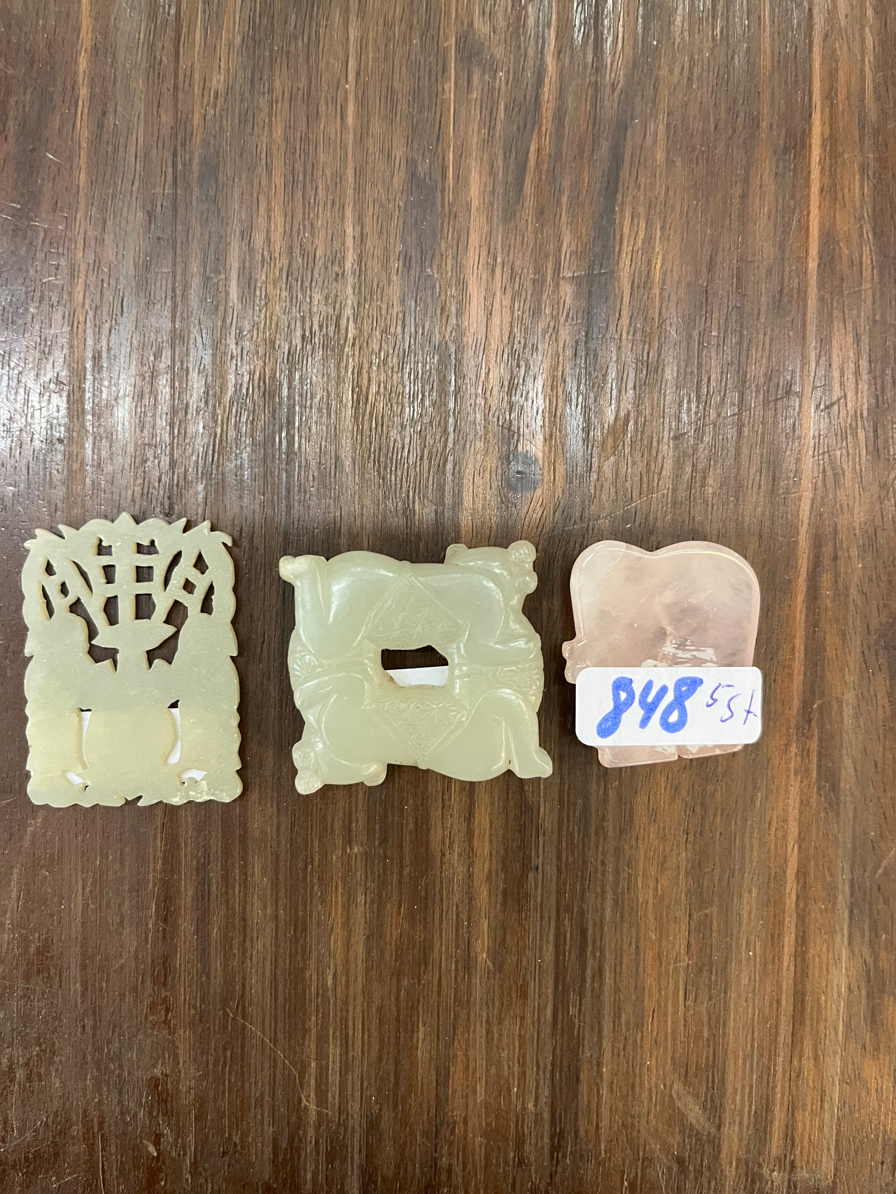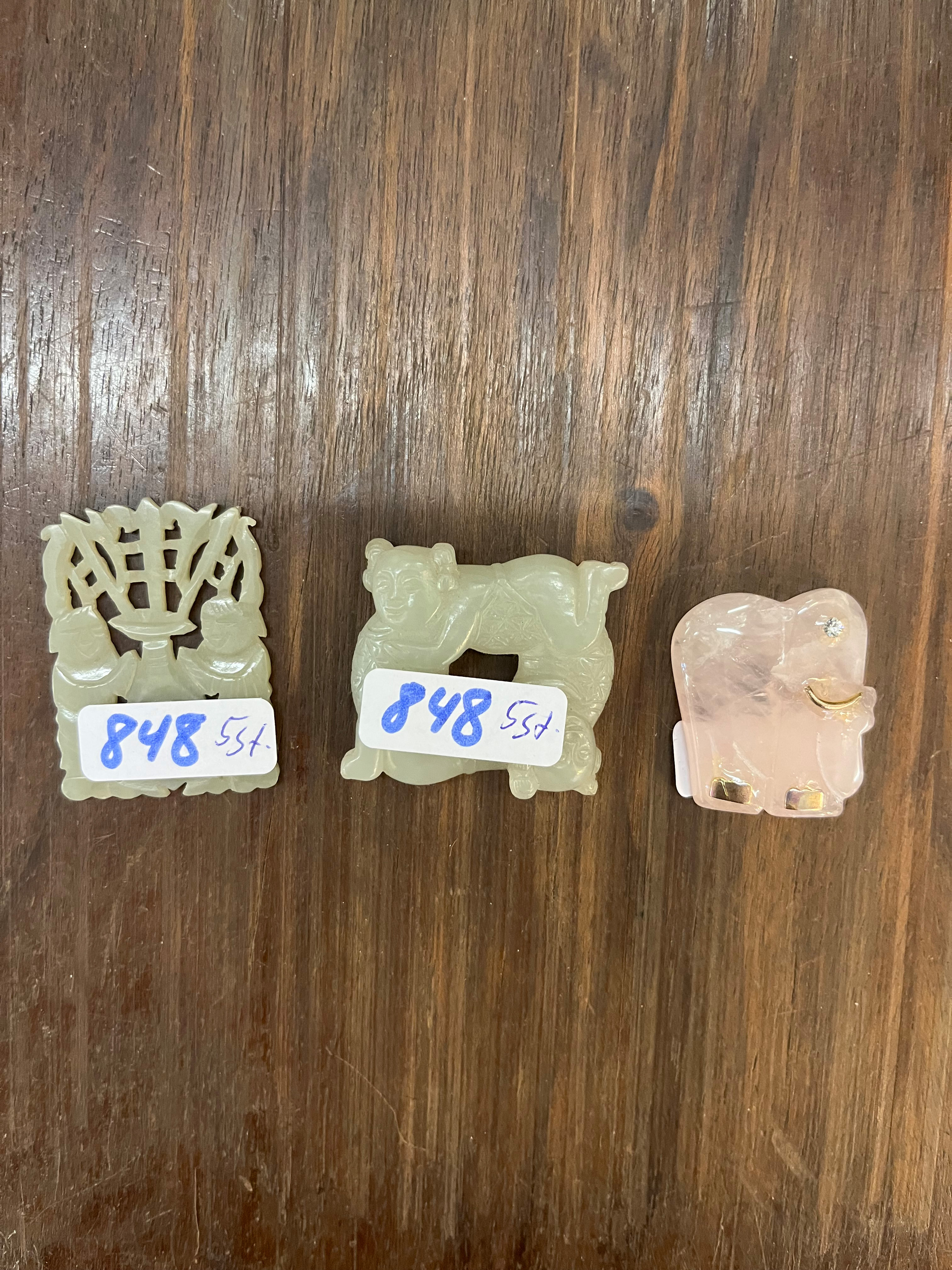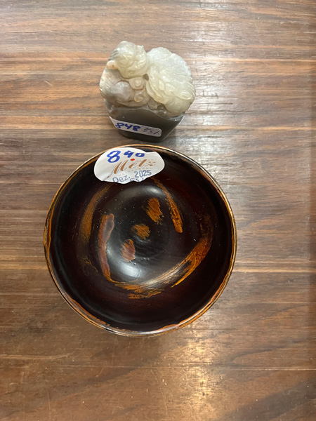 - Katalog-Nr: 848Fünftlgs. Konvolut Asiatika aus Bronze, Holz und Speckstein. Bestehend aus: Div. Schnitzereien (H=3 bis 4 cm), Stempel (H=5,5 cm) und Schälchen (H=5 cm, D=7,5 cm).o.L.