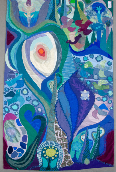 - Katalog-Nr: 834Patchwork-Wandbehang. Wohl Julia Muench 20. Jh., 134 x 223 cm.o.L.