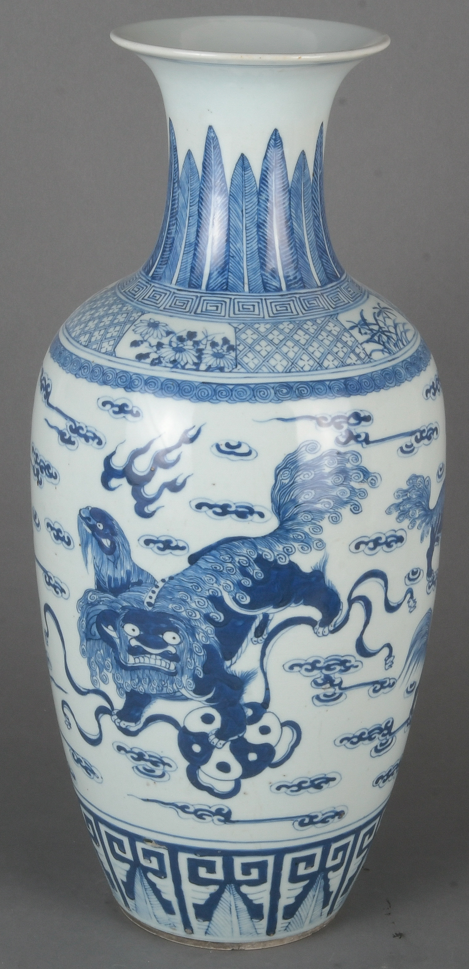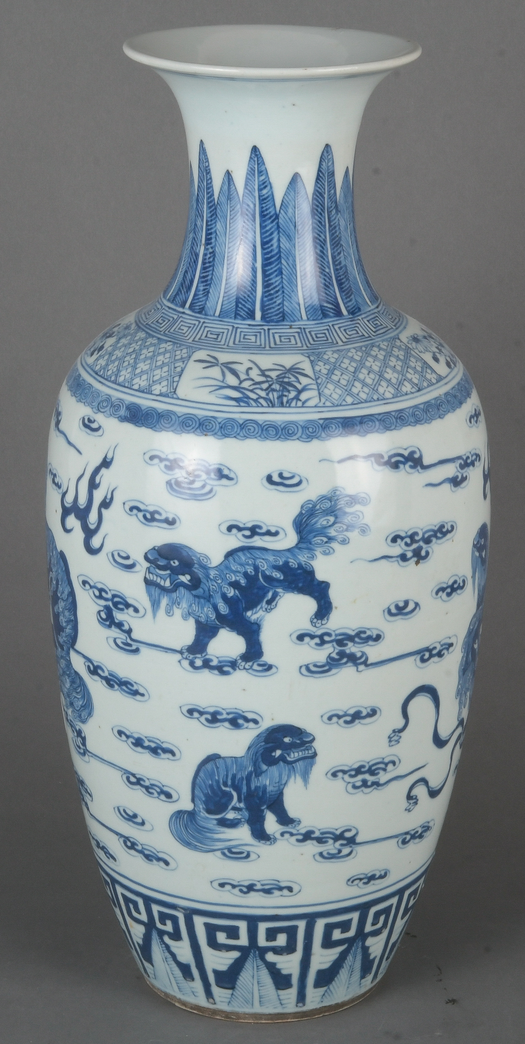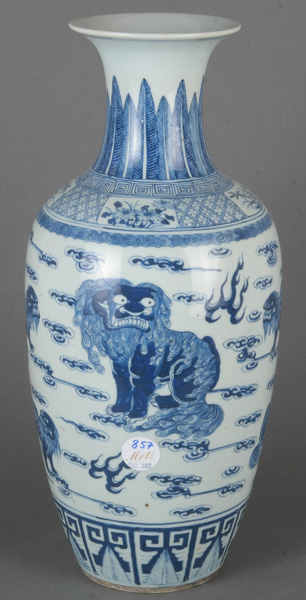 - Katalog-Nr: 857Hohe Vase. Asien. Porzellan, unterglasurblau bemalt; ohne Marke, H=47 cm.o.L.