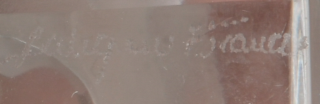 - Katalog-Nr: 863Hahn. Paris, René Lalique 20. Jh. Farbloses opakes Glas, seitl. am Sockel sign., H=20,6 cm. (min. best.)o.L.