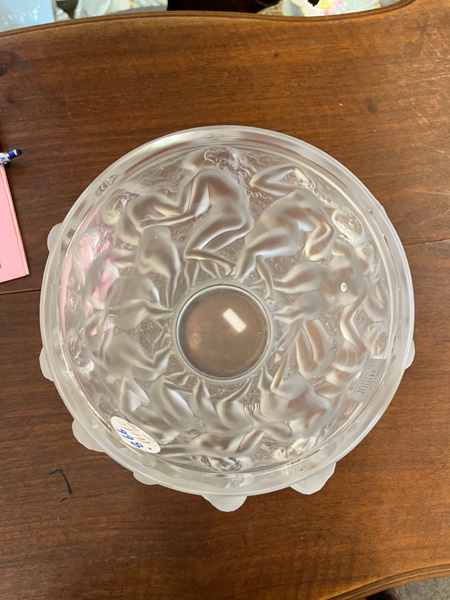 - Katalog-Nr: 865Anbietschale und Stier. Paris, René Lalique 20. Jh. Farbloses opakes Glas, am Boden sign., H=8,7 / 8,8 cm. (min. best.)o.L.