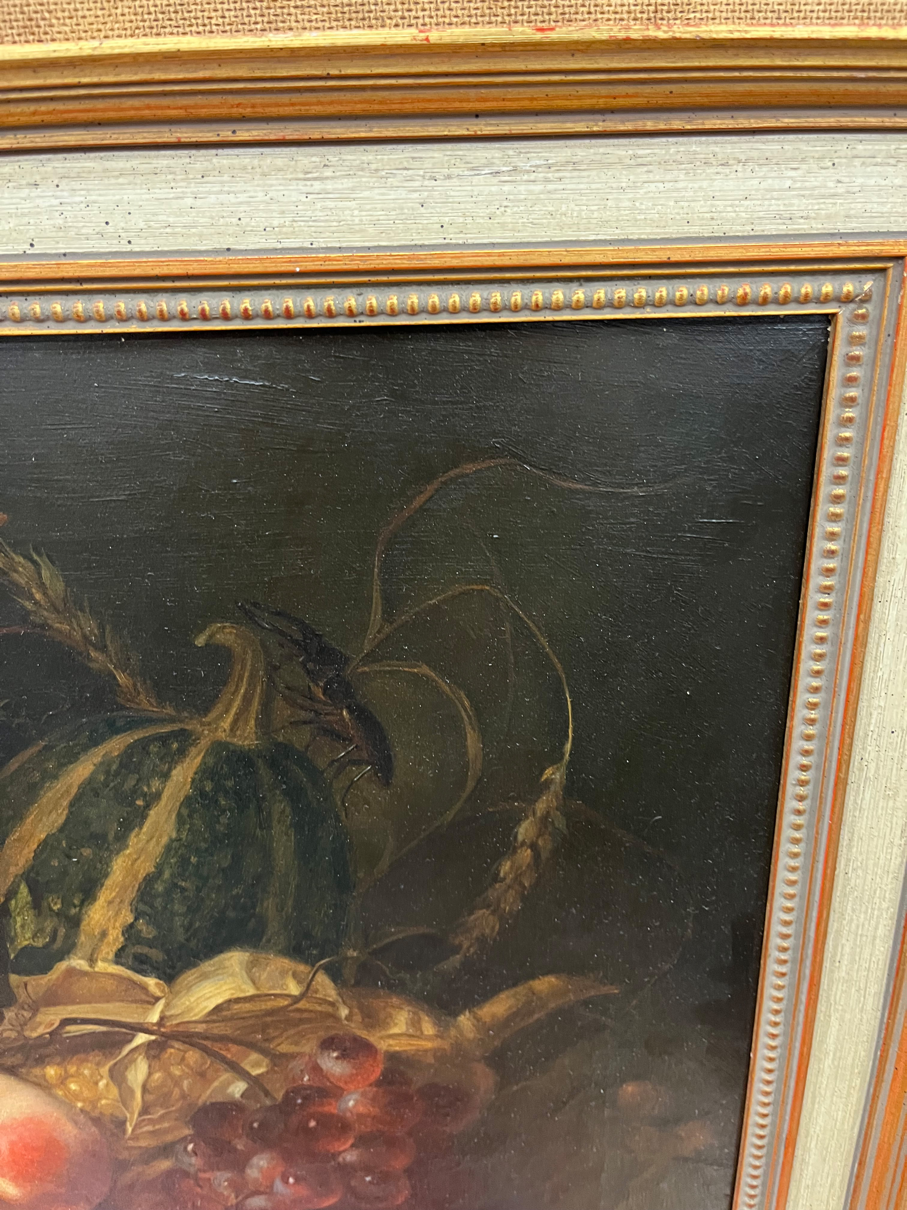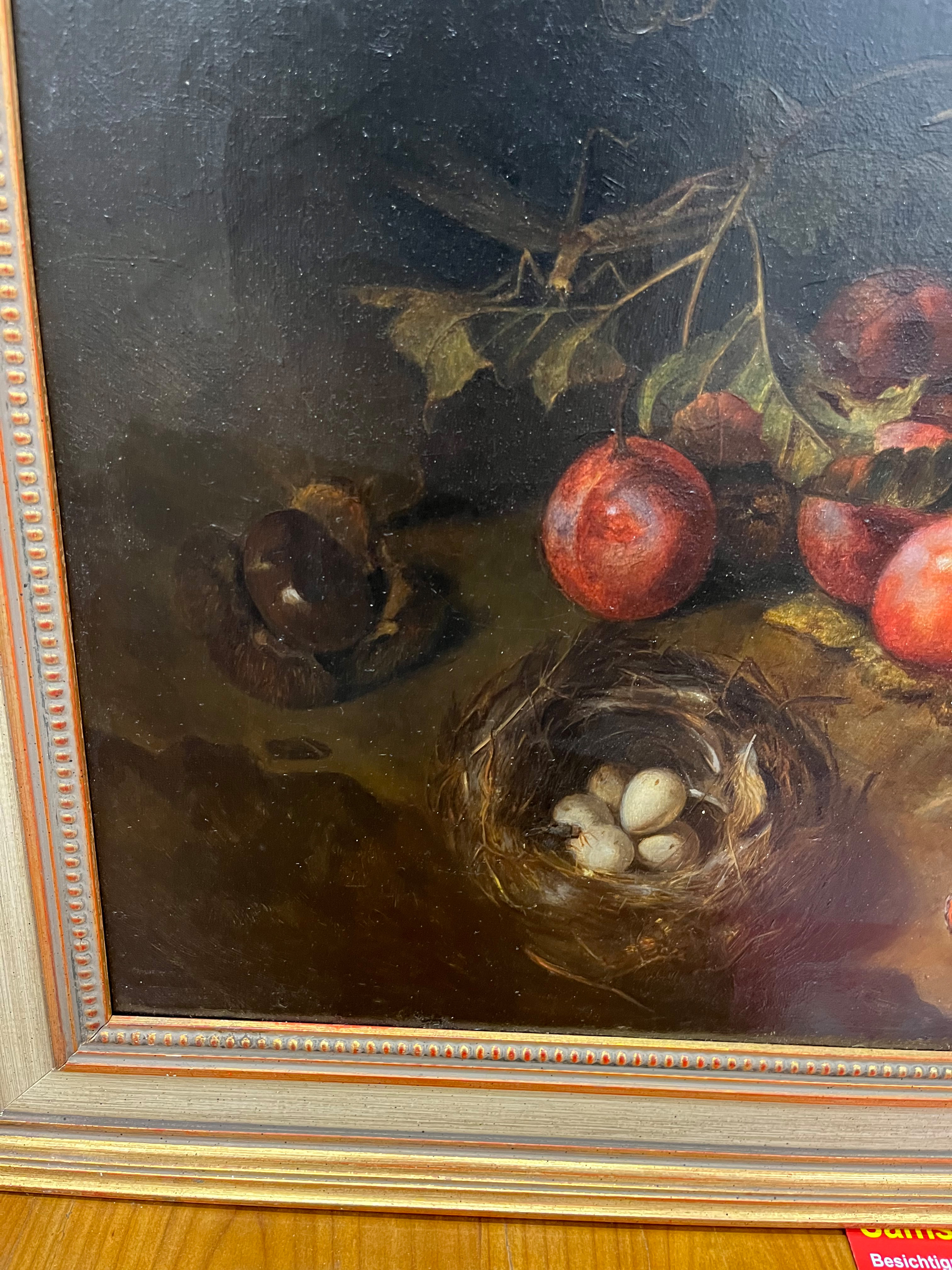 - Katalog-Nr: 891Maler des 20. Jhs. Stillleben mit Obst, Insekten und Reptil. Öl/Lw., gerahmt, 46 x 61,5 cm.o.L.
