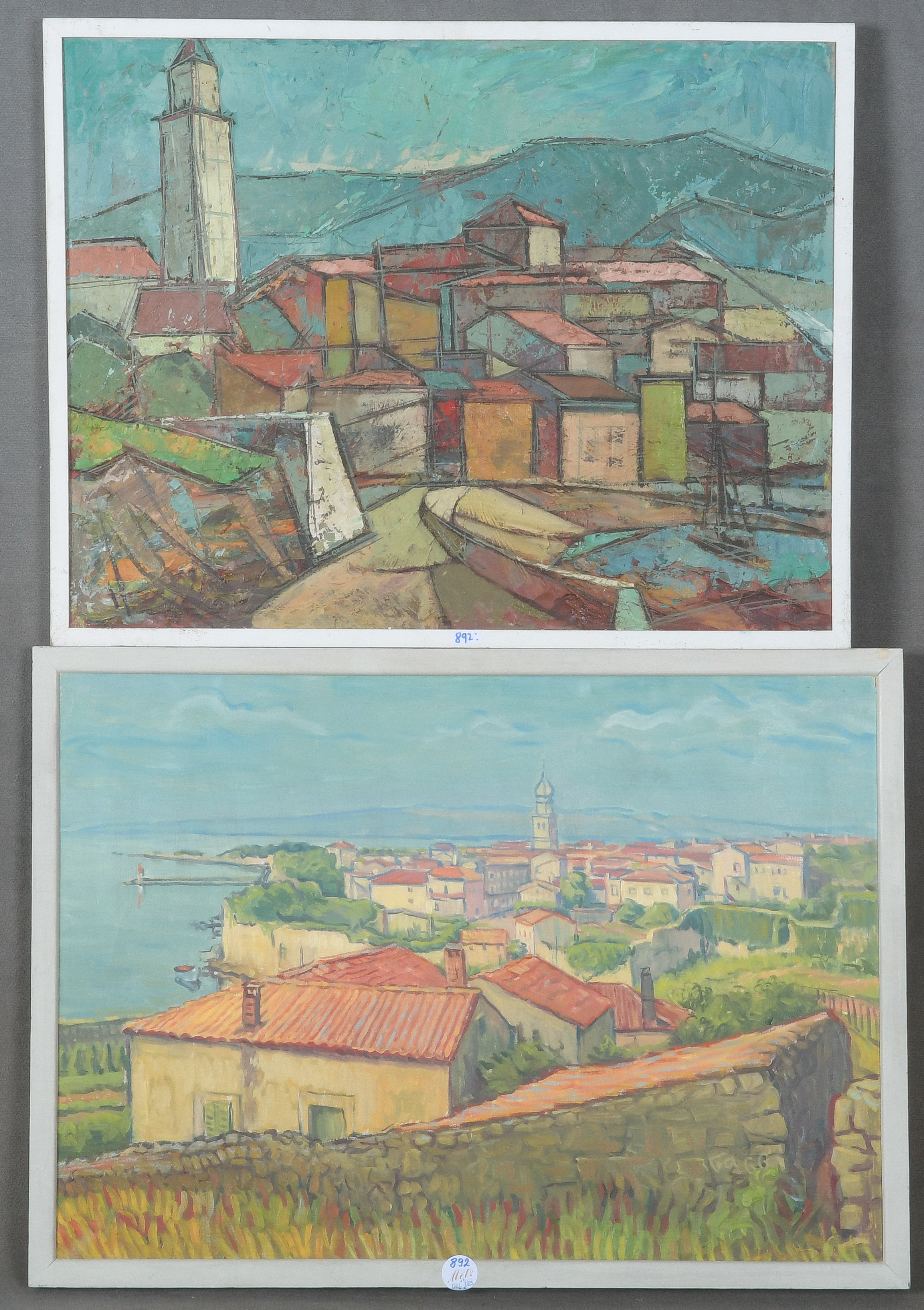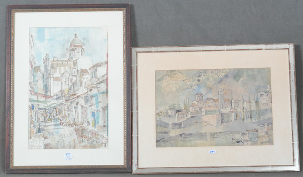 - Katalog-Nr: 892Kurt Fauldrath (1927-2012) / Hermann Haindl (1927-2013). Zwei Ansichten südländischer Städte. Öl/Lw., eines re./u./sign., das andere verso bez., gerahmt, 50 x 70 / 50,5 x 65,5 cm.o.L.
