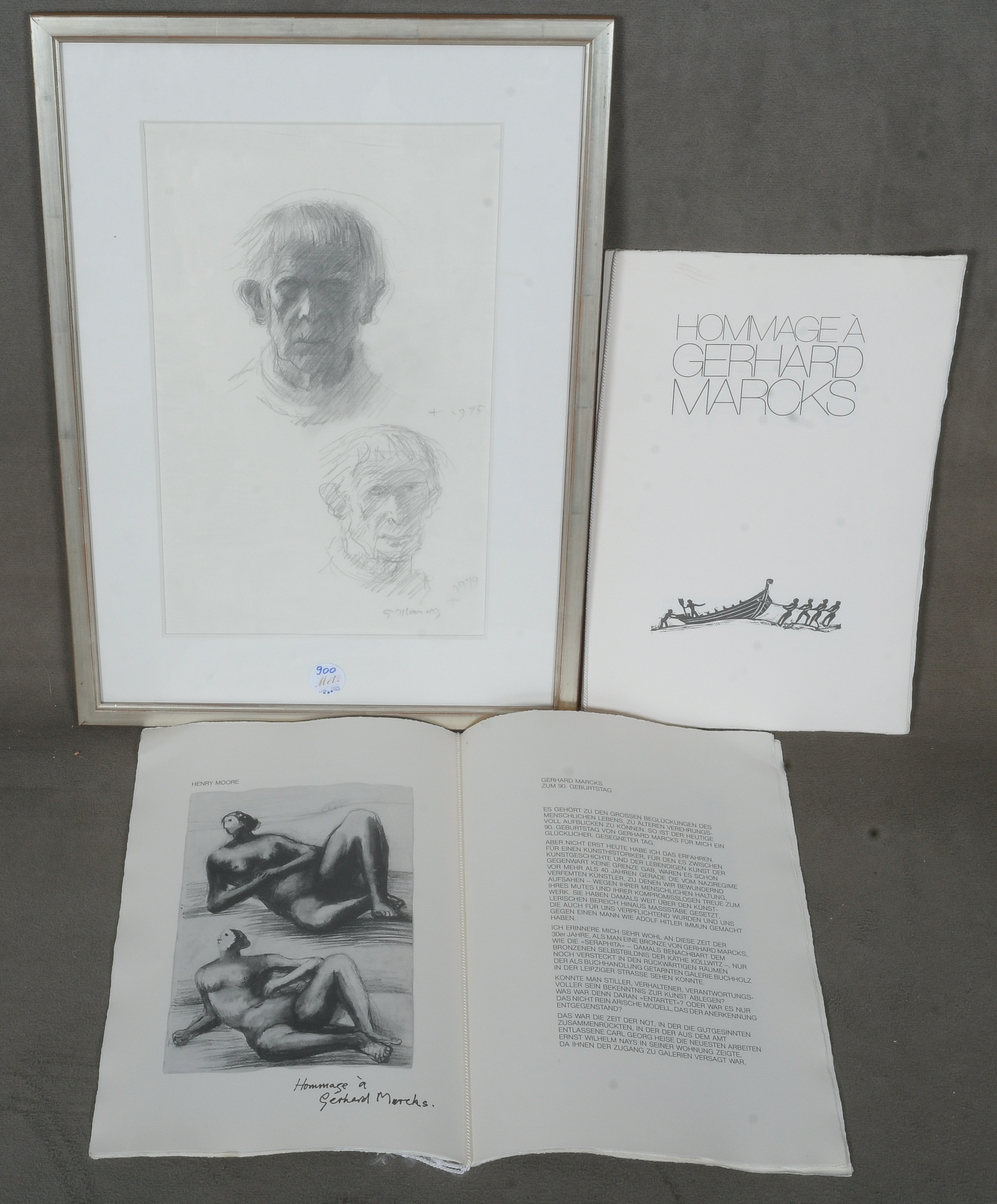 - Katalog-Nr: 900Gerhard Marcks (1889-1981). Selbstporträt. Bleistiftzeichnung, re./u./sign./dat. 1975 / 1979, mit Passepartout hi./Gl. gerahmt, 43 x 26 cm; dazu zwei Mappen.o.L.