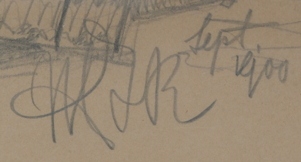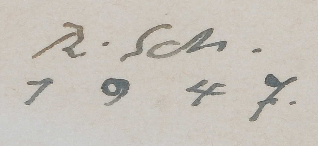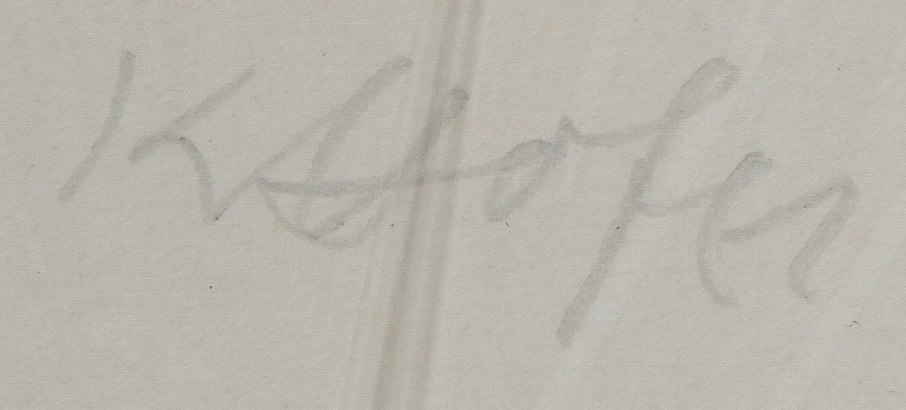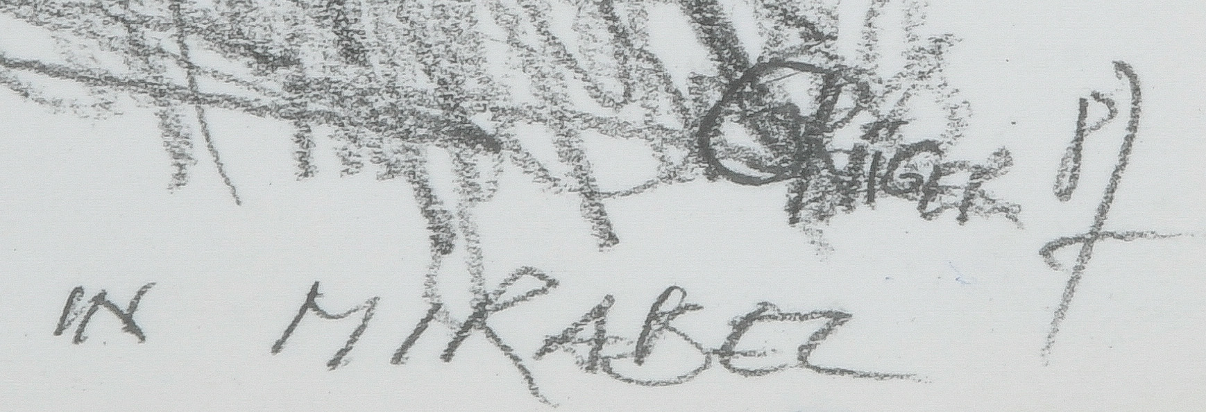 - Katalog-Nr: 947Ev Grüger (1928-2017). „In Mirabel“. Bleistiftzeichnung, re./u./sign./dat. (19)87, hi./Gl. gerahmt, 25 x 32,5 cm.o.L.