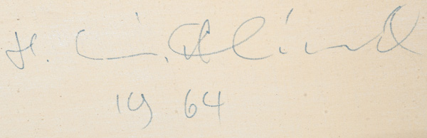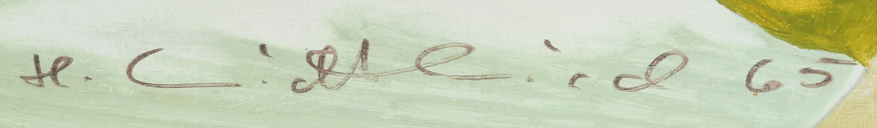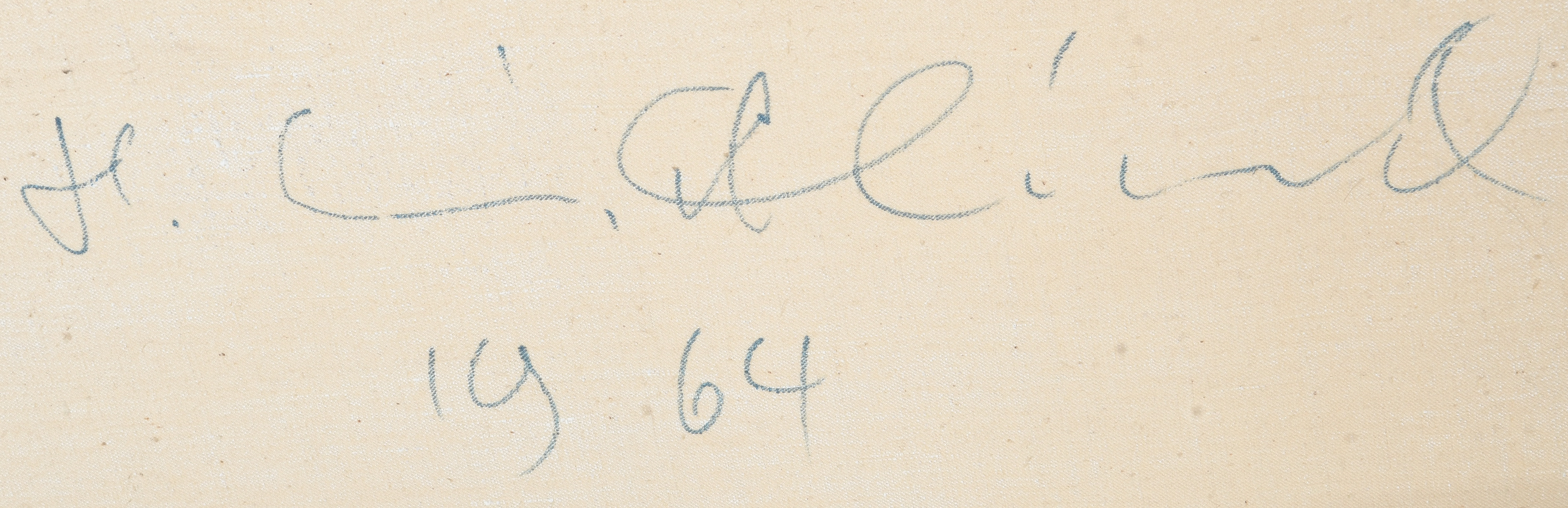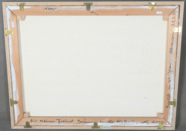 - Katalog-Nr: 935Hermann Schmidt-Schmied (1924-2010). „Friedliche Geister“. Öl/Lw., verso sign./dat. (19)64, gerahmt, 76 x 105 cm.o.L.