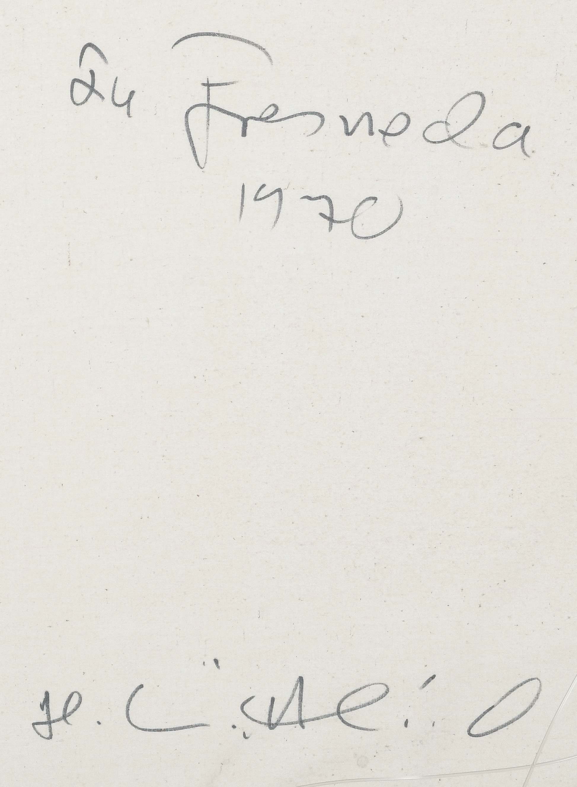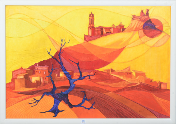 - Katalog-Nr: 936Hermann Schmidt-Schmied (1924-2010). „Zu Fresneda“. Öl/Lw., verso sign./dat. 1970, gerahmt, 70,5 x 100 cm.o.L.