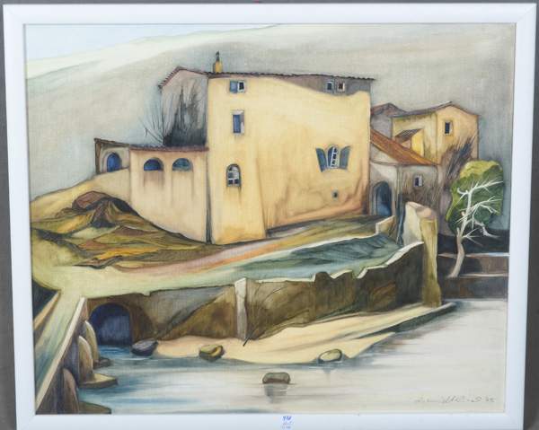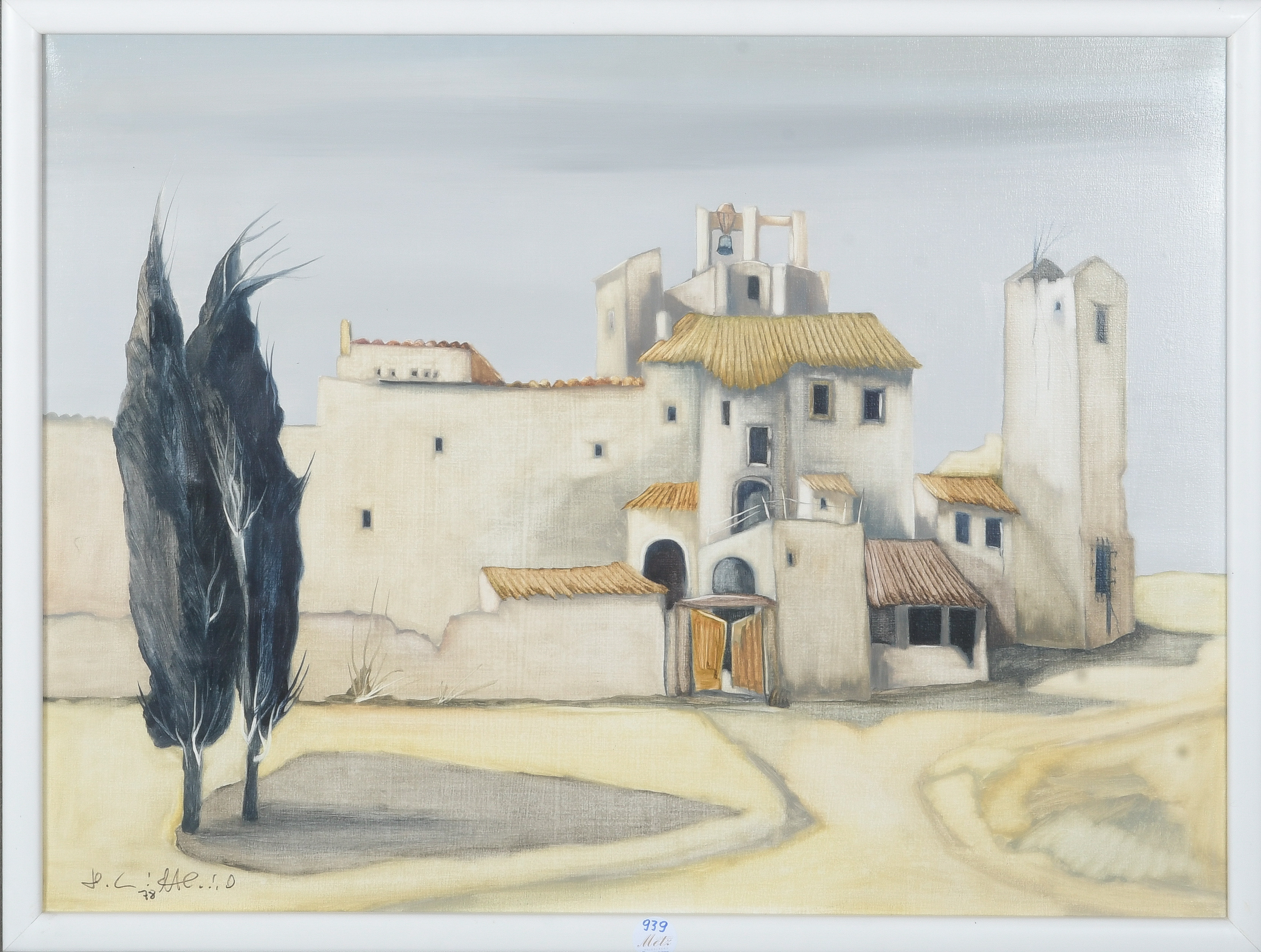 - Katalog-Nr: 938Hermann Schmidt-Schmied (1924-2010). Südländische Gebäude. Öl/Lw., re./u./sign./dat. (19)75, gerahmt, 75 x 90 cm.o.L.