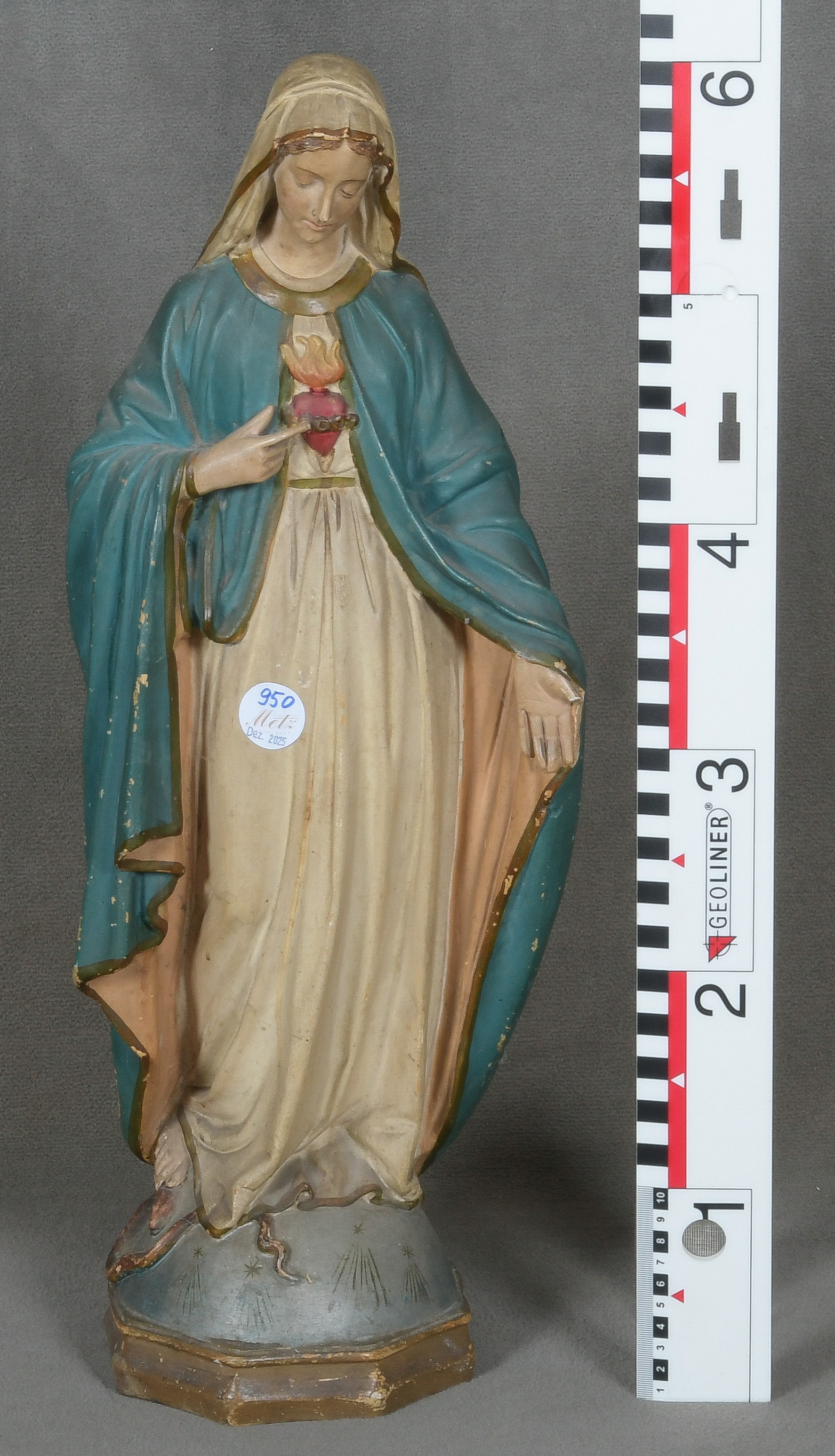 - Katalog-Nr: 950Muttergottes. Wohl deutsch um 1900. Keramik, bunt bemalt, H=60 cm. (best.)o.L.