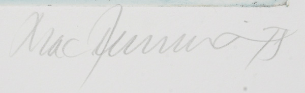 - Katalog-Nr: 932Mac Zimmermann (1912-1995). Surrealistische Landschaft mit Figuren. Farbradierung 63/75, re./u./sign./dat. 1973, 40 x 49,5 cm.o.L.