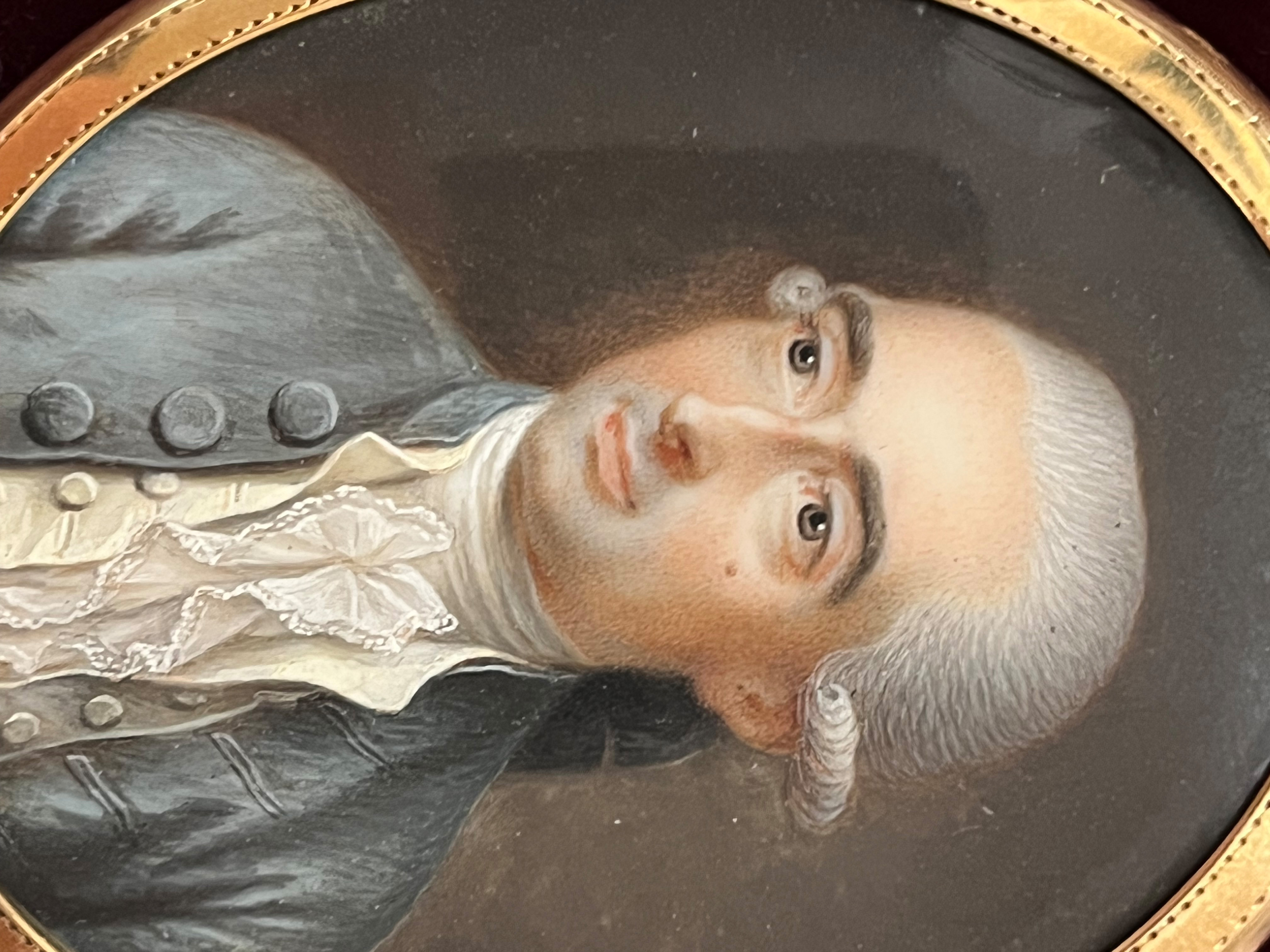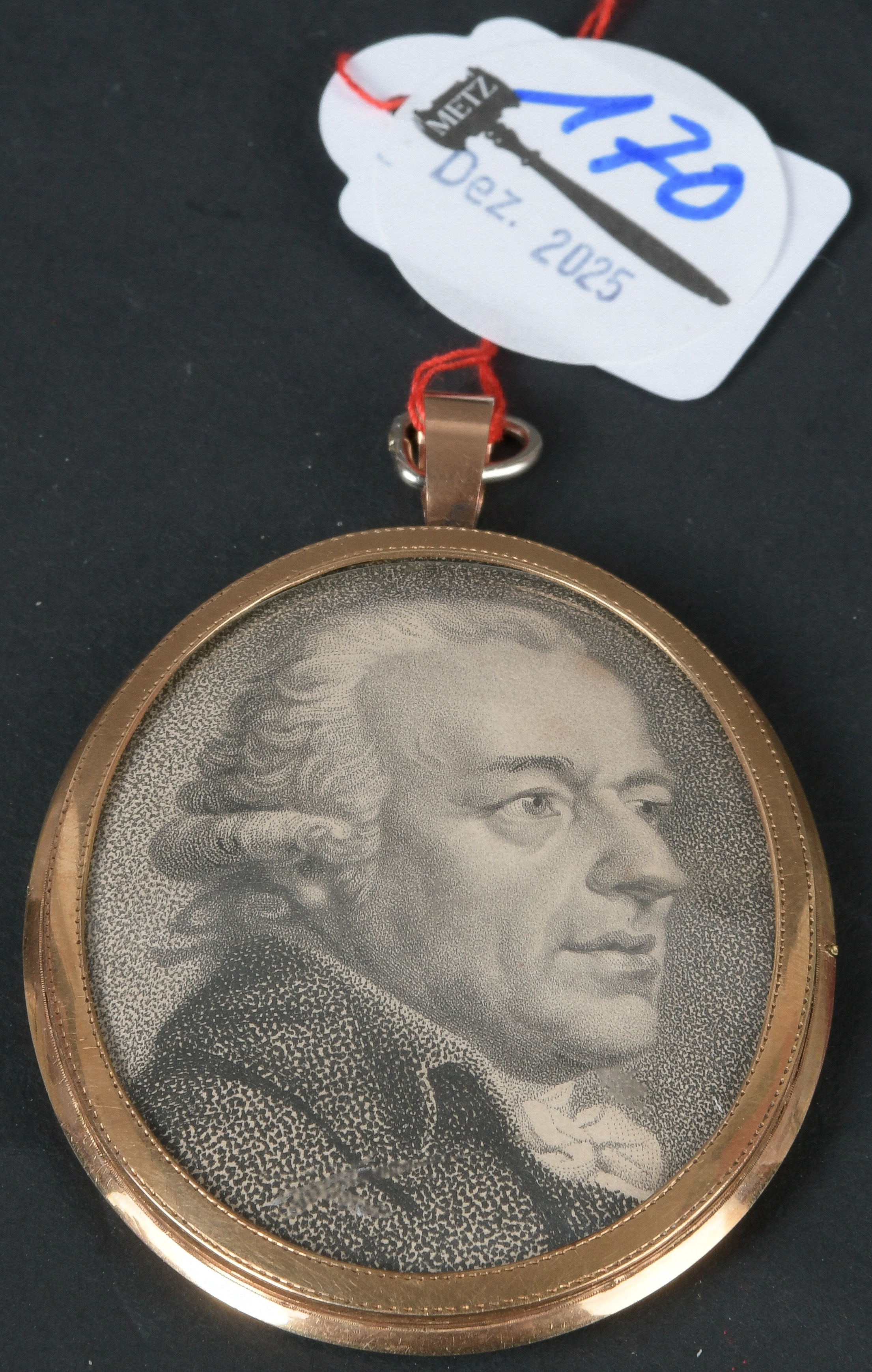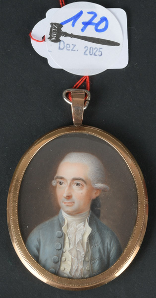 - Katalog-Nr: 172Miniaturist des 18. Jhs. Porträt eines Herren, hi./Gl. gerahmt, D=7,2 cm.o.L.