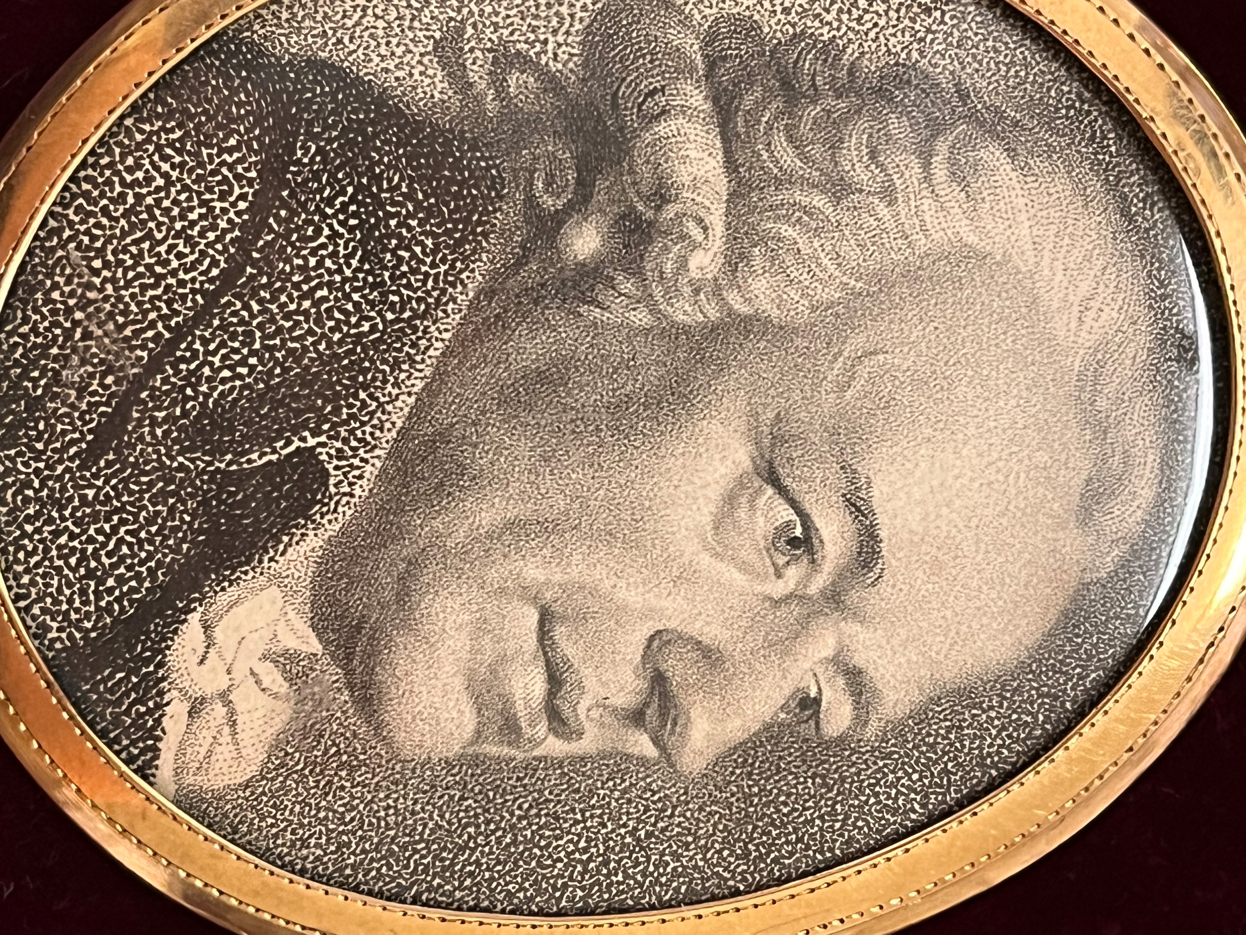- Katalog-Nr: 171Miniaturist des 19. Jhs. Porträt einer Dame, hi./Gl. in Goldrahmen, D=7,2 cm.o.L.