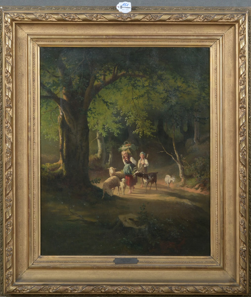 - Katalog-Nr: 151Peter Bücken (1830/31-1915). Waldlandschaft mit Vieh und Personenstaffage. Öl/Lw., li./u./sign., gerahmt, 57 x 47 cm.o.L.