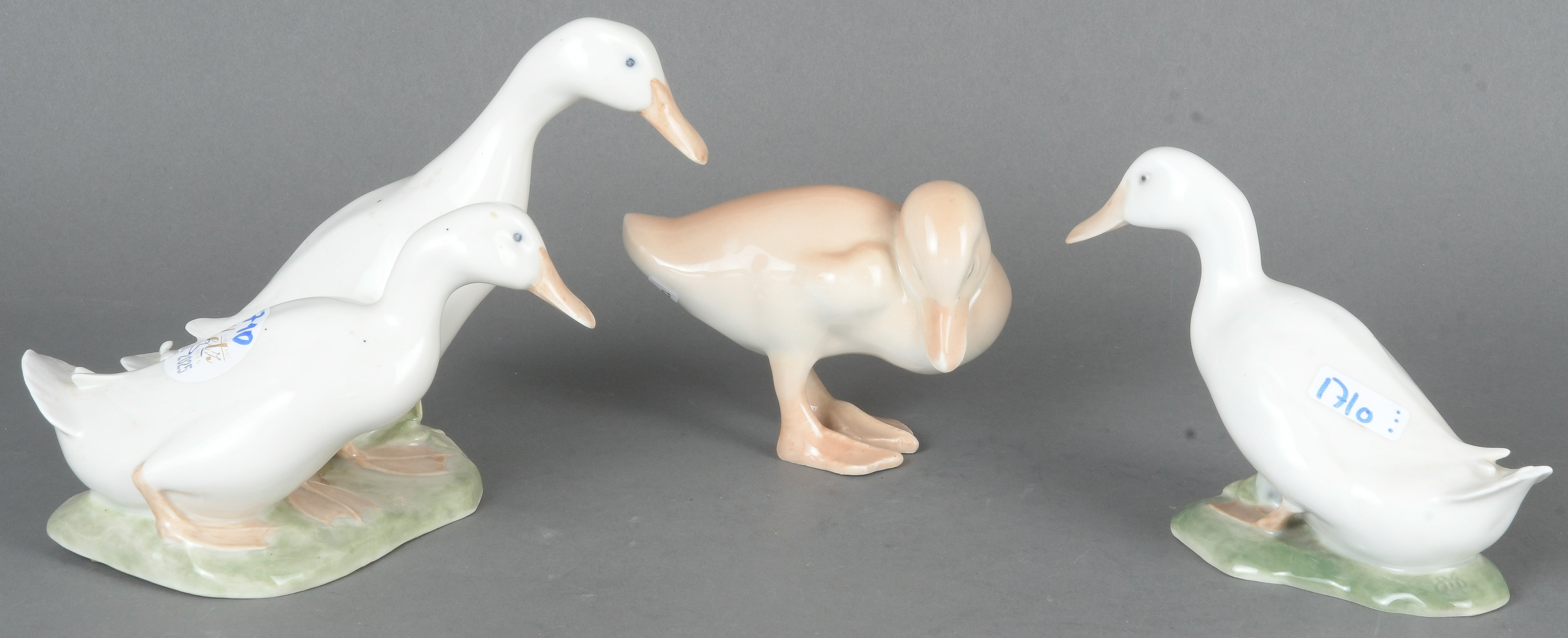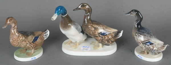 - Katalog-Nr: 1710Zwei Gänse und -gruppe. Bing & Grøndahl / Royal Copenhagen 20. Jh. Porzellan, bunt bemalt; am Boden gemarkt, mit Ziffer „1588“ / „2128“ / „1192“, H=8 bis 13 cm. (eine best.)o.L.