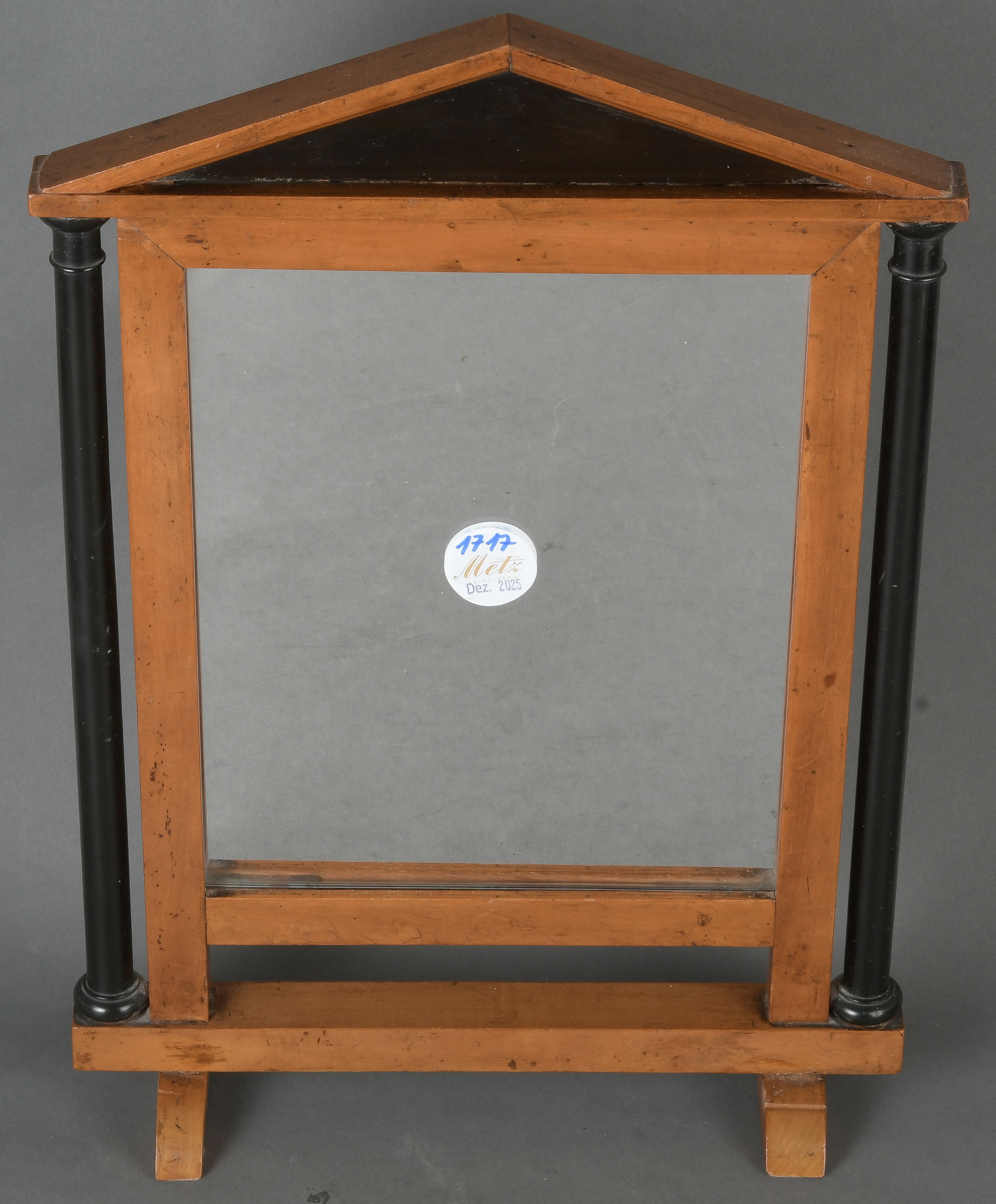 - Katalog-Nr: 1717Biedermeier-Tischspiegel. Süddeutschland 19. Jh. Massivholz, teilw. ebonisiert, H=42 cm, B=28,5 cm, T=9 cm.o.L.