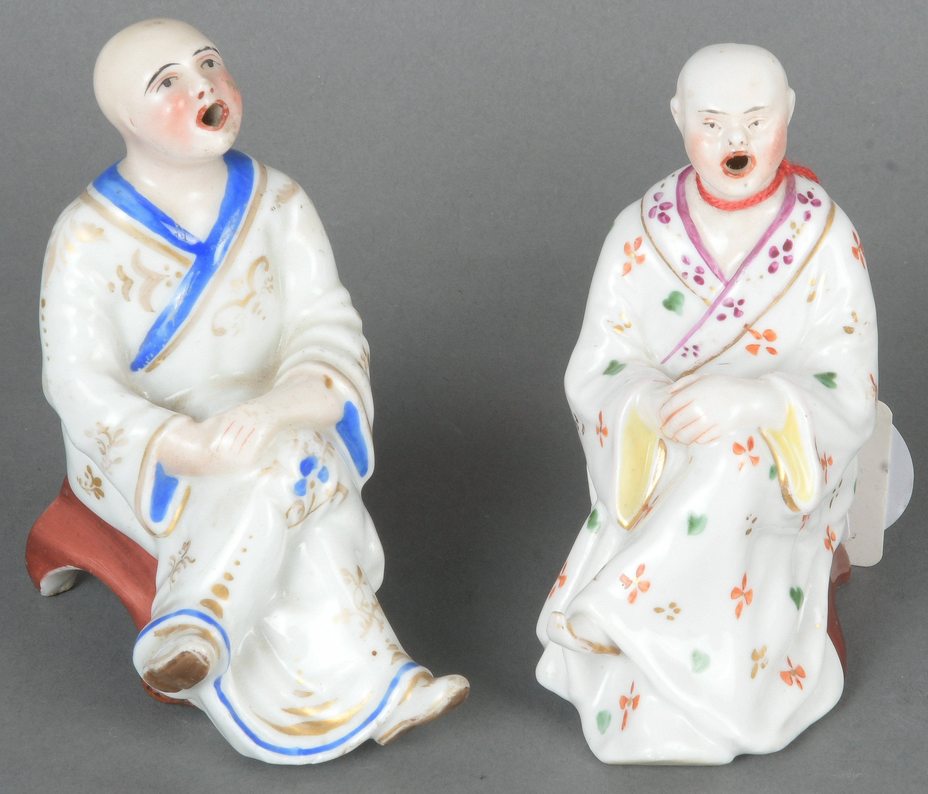 - Katalog-Nr: 1719Zwei Räucherpagoden. Thüringen 19. Jh. Porzellan, bunt bemalt, H=9,8 / 9,6 cm.o.L.