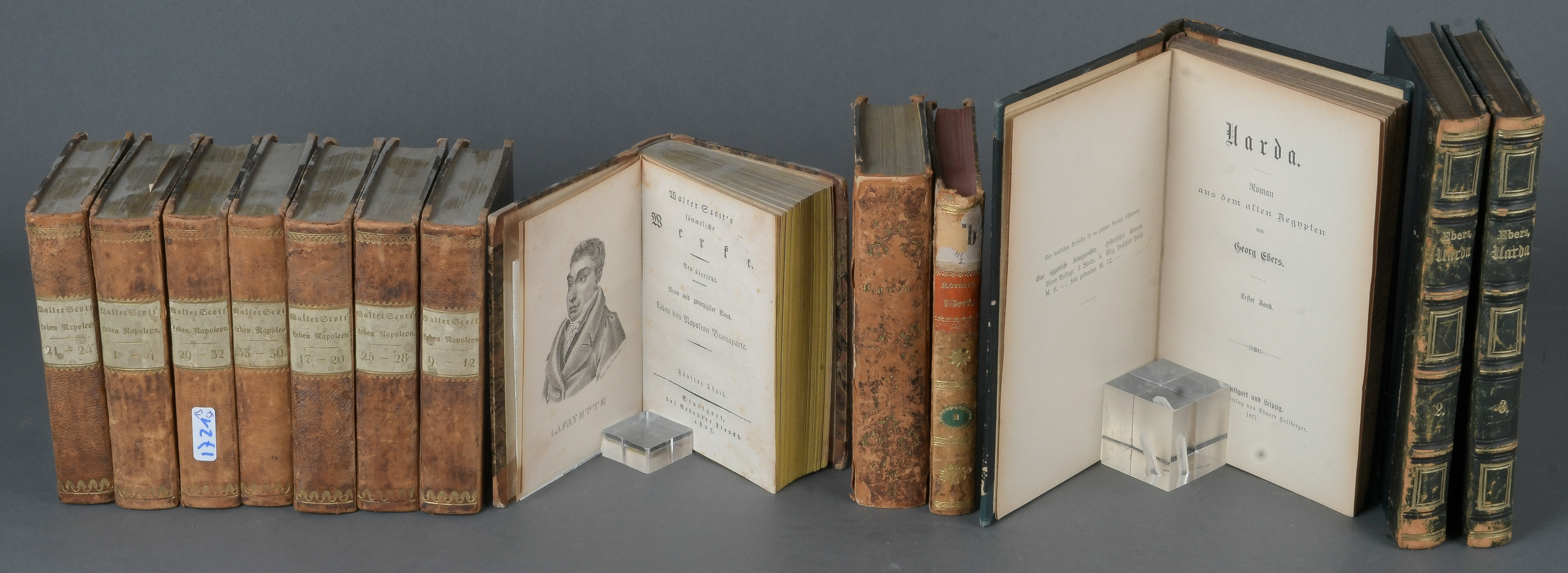 - Katalog-Nr: 1721Konvolut Literatur, u.a. Walter Scott's, „Leben von Napoleon Buonaparte“, acht Bde., Stuttgart 1827.o.L.