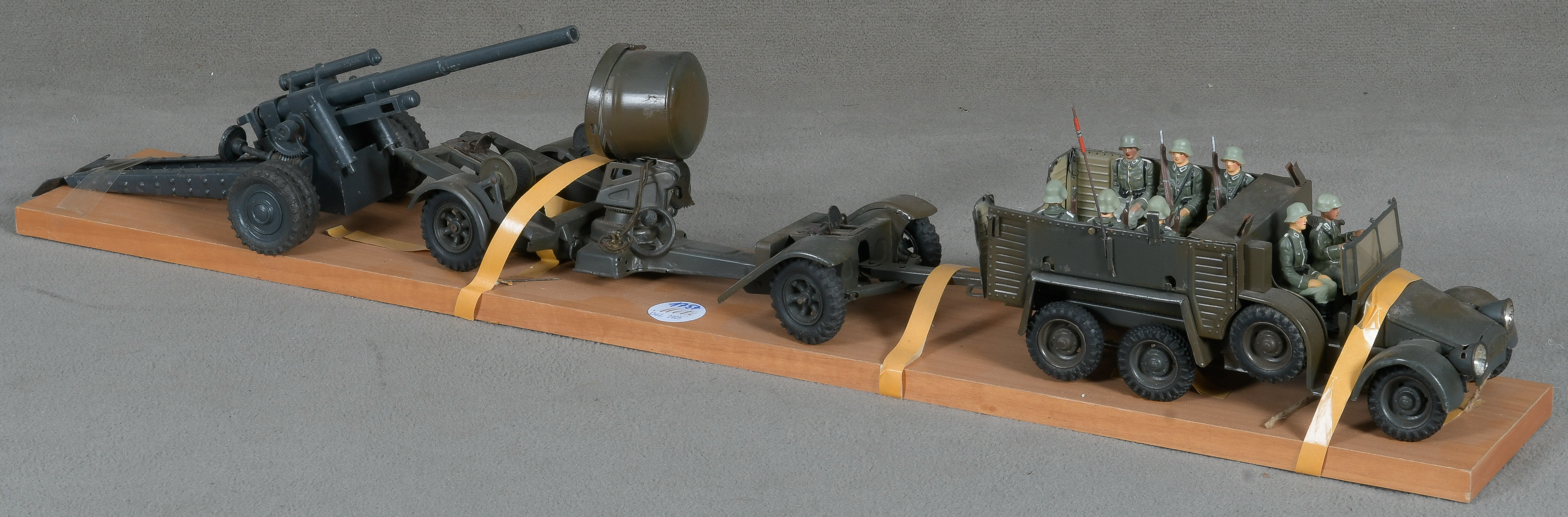 - Katalog-Nr: 1756Schwerer Mörser, schwere Flak-Artillerie und Flak. Deutsch 20. Jh. Blech, bemalt, H=7,5 bis 11 cm.o.L.