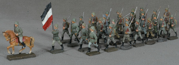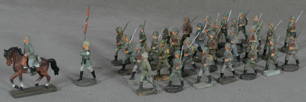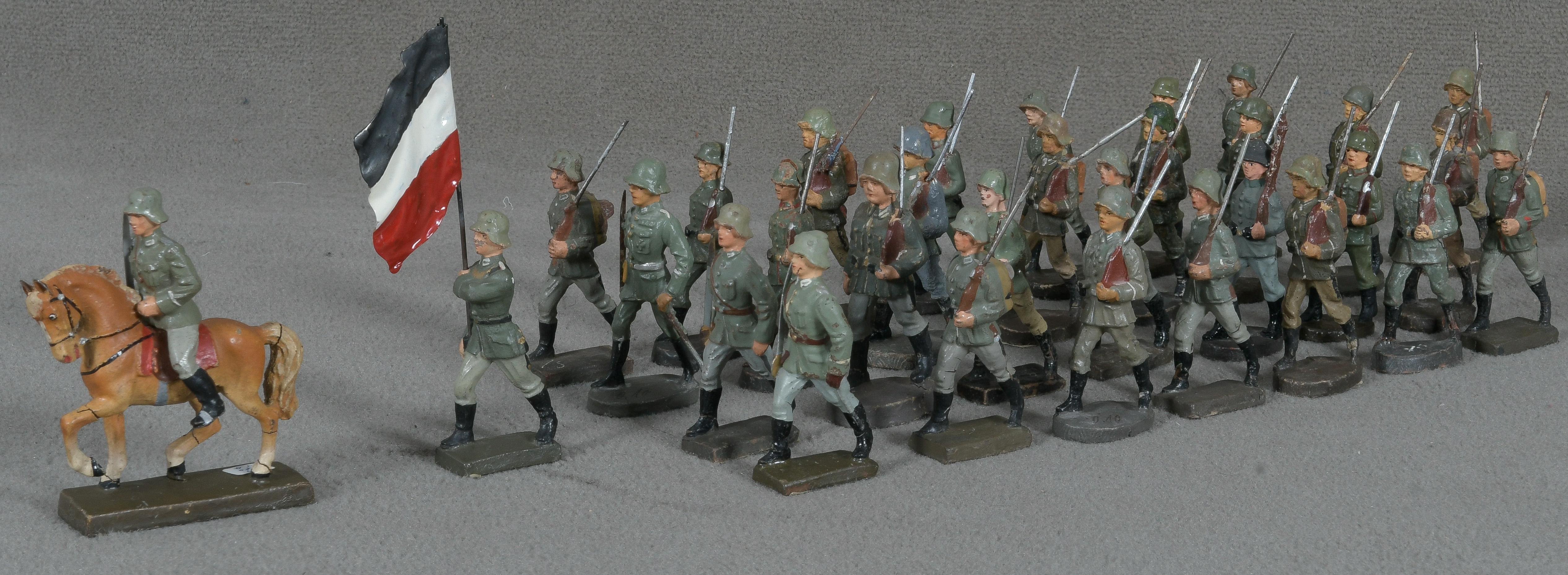 - Katalog-Nr: 176331-tlgs. Konvolut Spielzeug-Soldaten der Infanterie II. WK. Deutsch 20. Jh. Elastolin, H=7 bis 13 cm. (teilw. besch.)o.L.