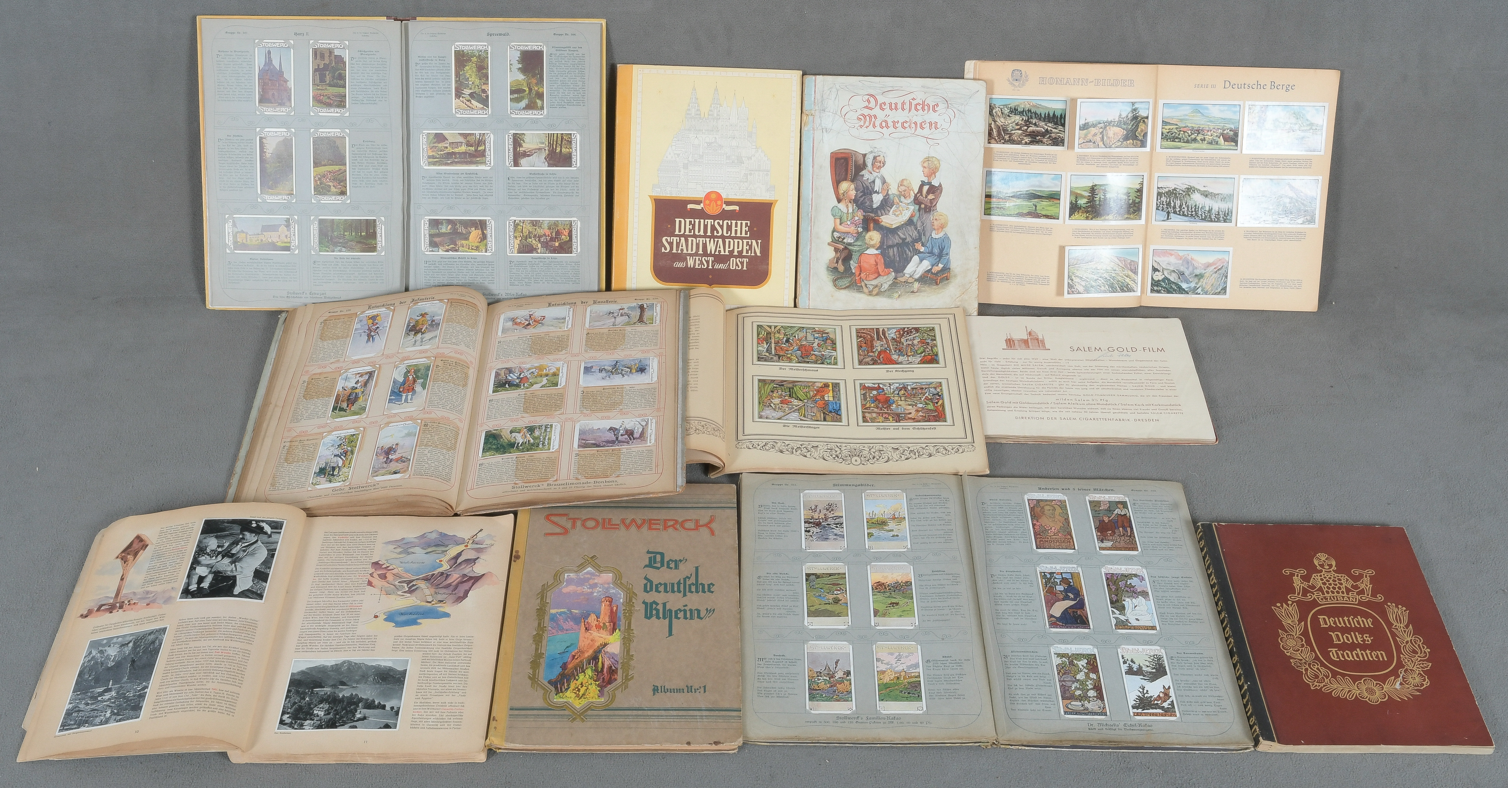 - Katalog-Nr: 1772Konvolut Klebebilder-Alben, u.a. Deutsche Märchen, Filmschauspieler, Kulturlandschaften, Städte, Stadtwappen, Trachten und Vogelkunde.o.L.