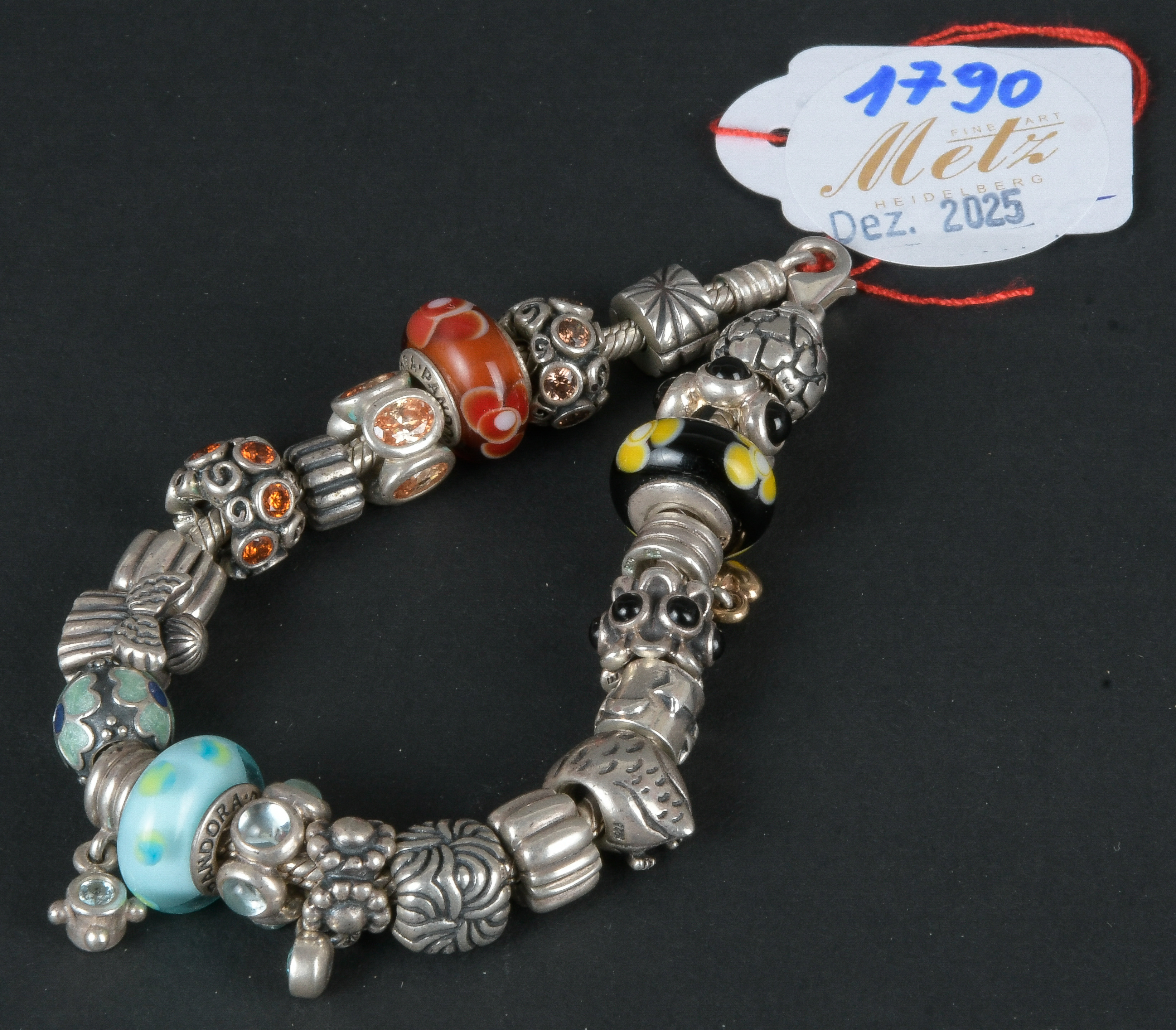 - Katalog-Nr: 1790Gliederarmband. Silber, teilw. emailliert und besetzt mit bunten Steinen, ca. 78,66 g, L=19 cm.o.L.