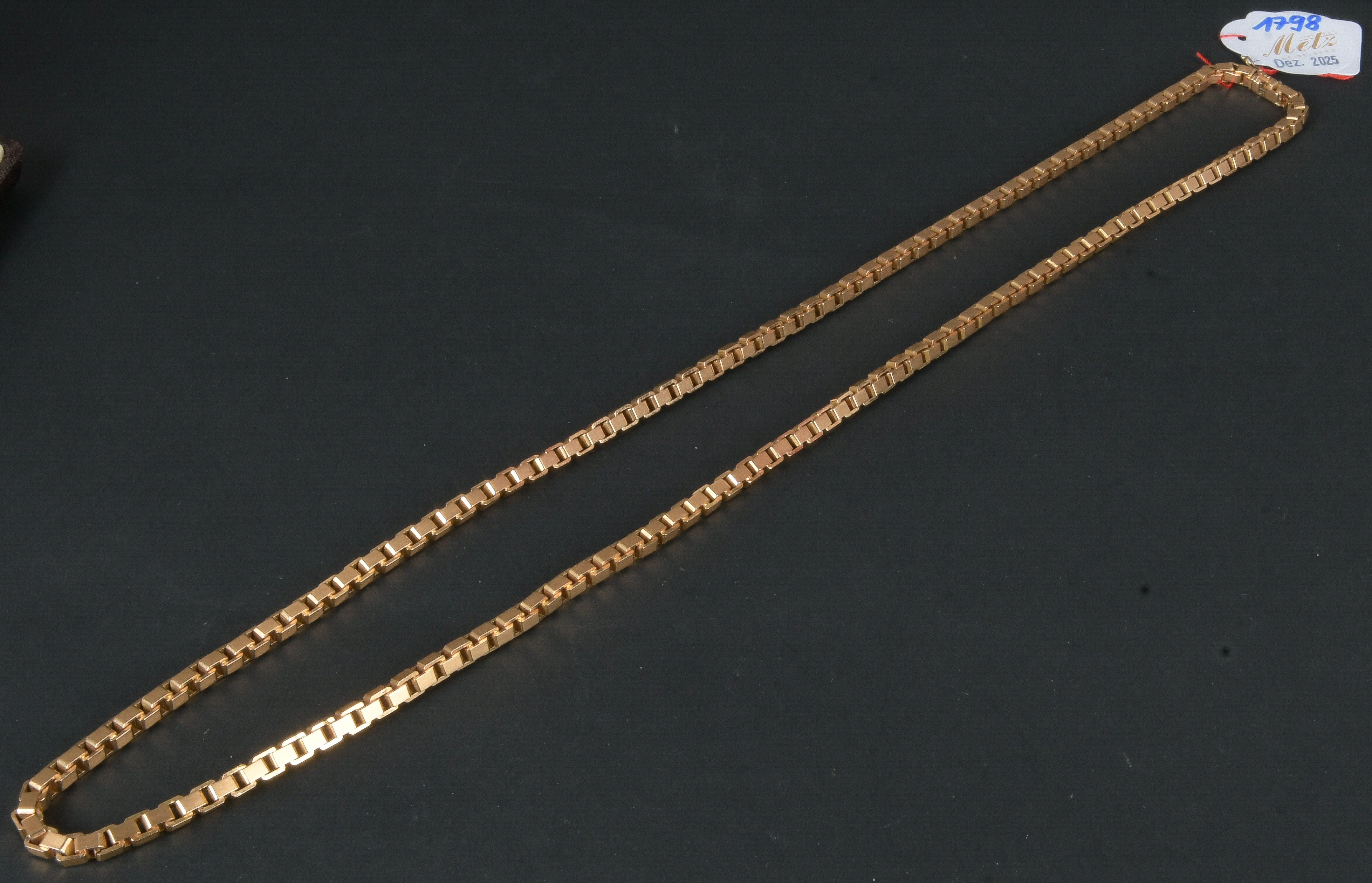 - Katalog-Nr: 1798Gliederhalskette. 18 kt Gold, ca. 141,84 g, L=74 cm, mit Etui von Juwelier Braun, Mannheim.o.L.