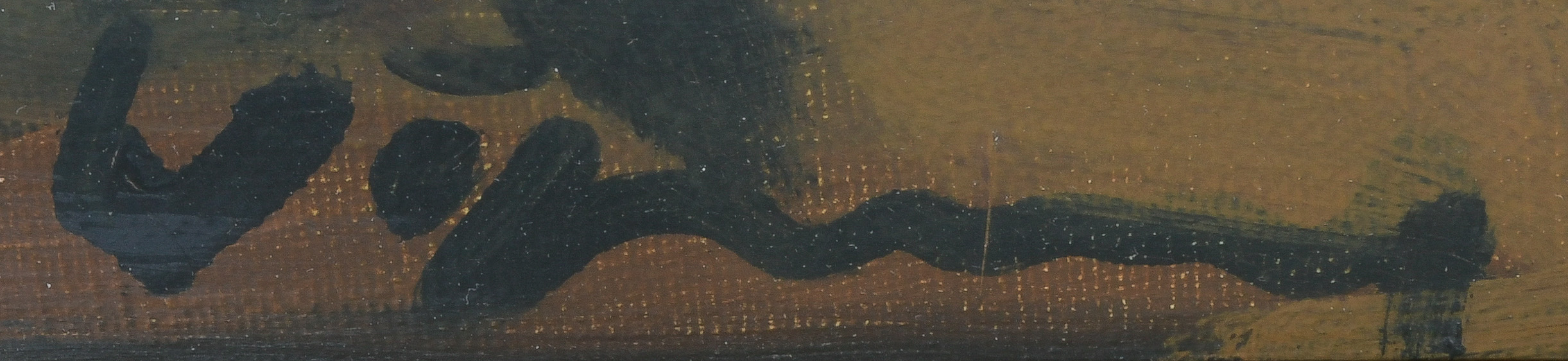 - Katalog-Nr: 1885Sepp (Josef) Georg Eringer (1879-1931). Landschaft mit Personenstaffage. Öl/Holz, re./u./sign., gerahmt, 15 x 24 cm; dazu Maler des 20. Jhs. Zimmerinterieur und Landschaft. Öl/Lw., aufgezogen, li./u./sign., gerahmt, 26,5 x 20 cm.o.L.