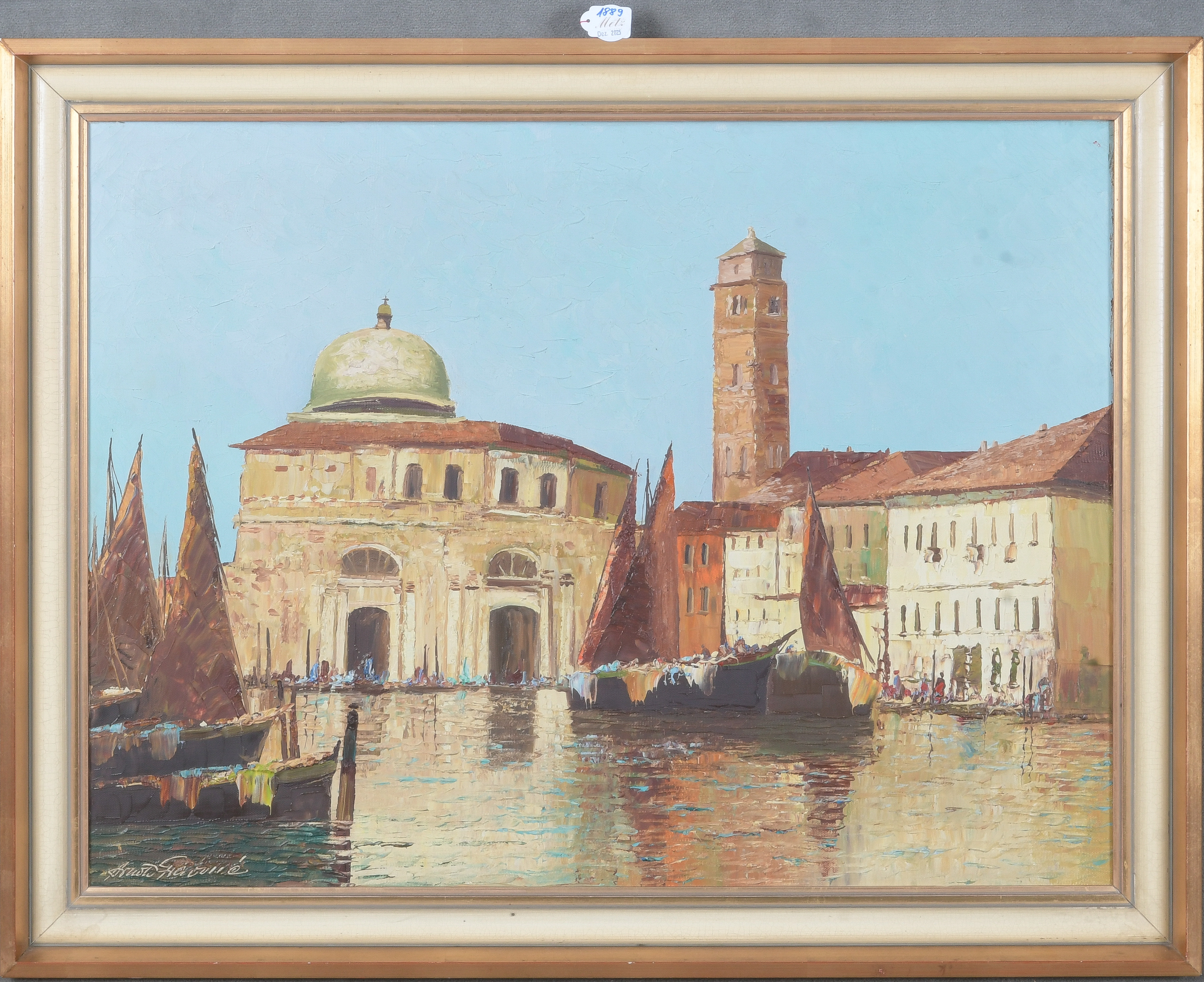 - Katalog-Nr: 1889Georg Arnold-Graboné (1896-1982). Ansicht des Palazzo Labia mit St. Geremia, Venedig. Öl/Lw., li./u./sign., verso originales Künstler-Etikett, gerahmt, 60 x 80 cm.o.L.