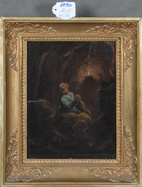 - Katalog-Nr: 1890Johann Georg Trautmann (1713-1769) attrib. Männliche Figur in der Andacht. Öl/Kupfer, gerahmt, 21 x 16 cm.o.L.