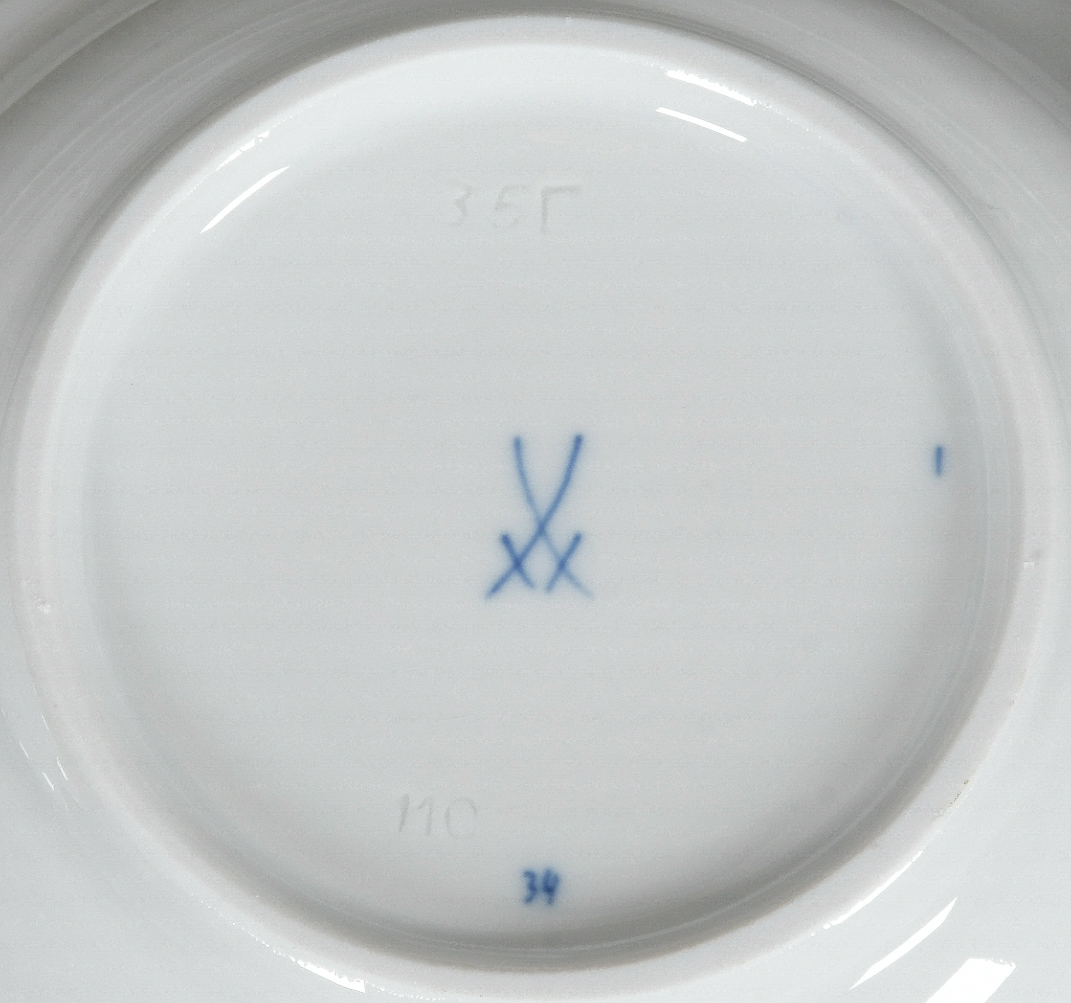 - Katalog-Nr: 191334-tlgs. Service. Krister 19. Jh. Porzellan, weiß glasiert mit Goldstreifen; am Boden gemarkt.o.L.