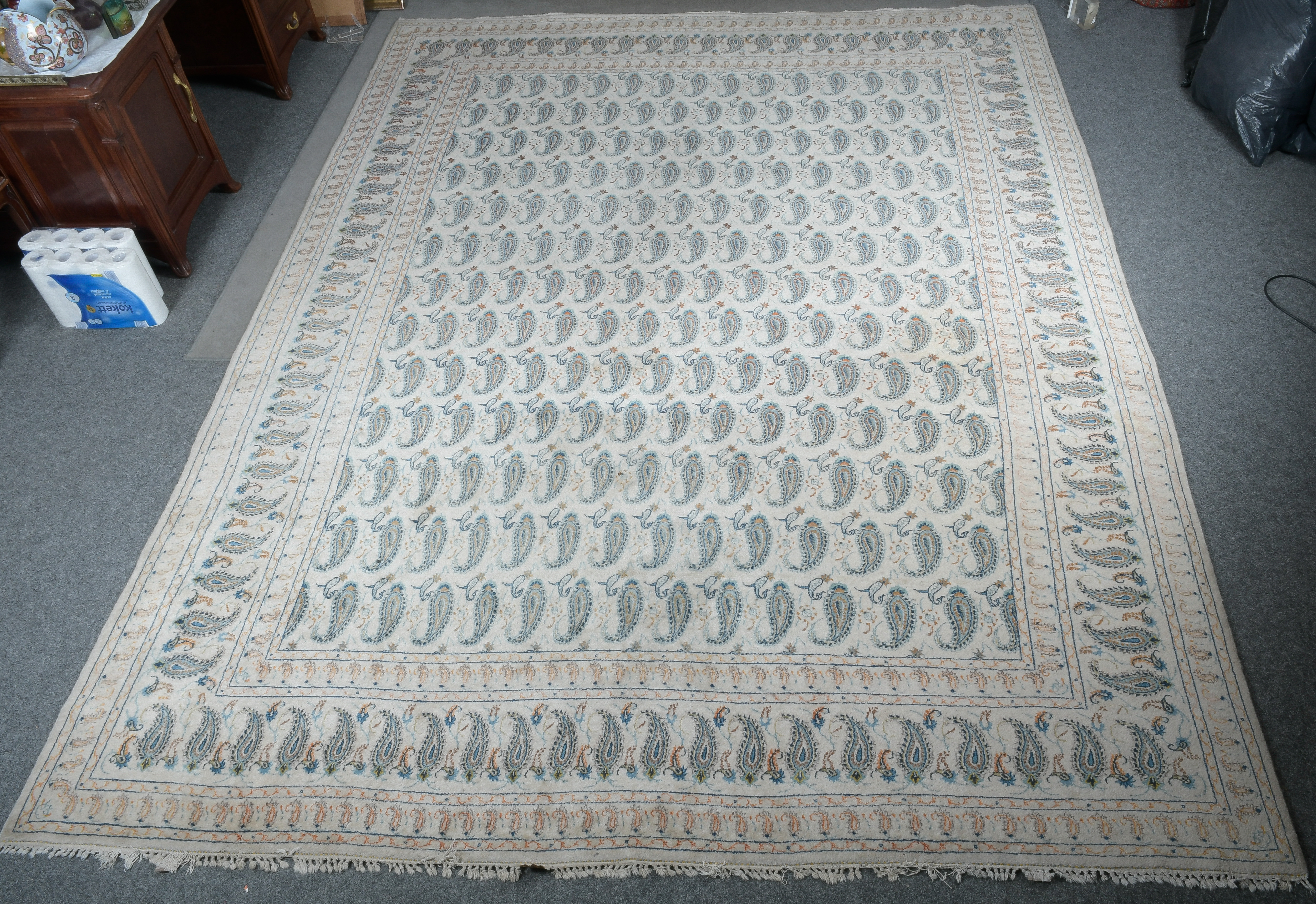 - Katalog-Nr: 1920Keshan-Teppich, 388 x 295 cm. Expertise der Galerie Teheran, Saarbrücken, vom 11.9.1982 liegt vor.o.L.