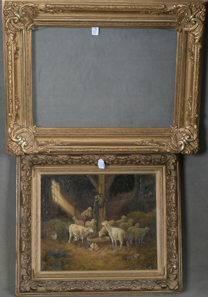 - Katalog-Nr: 1922Henri de Bréval (Maler des 19./20. Jhs.). Schafe im Stall mit Federvieh und Personenstaffage. Öl/Lw., li./u./sign., gerahmt, 38 x 46 cm. Dazu Rahmen, 62 x 72 cm. (besch.)o.L.