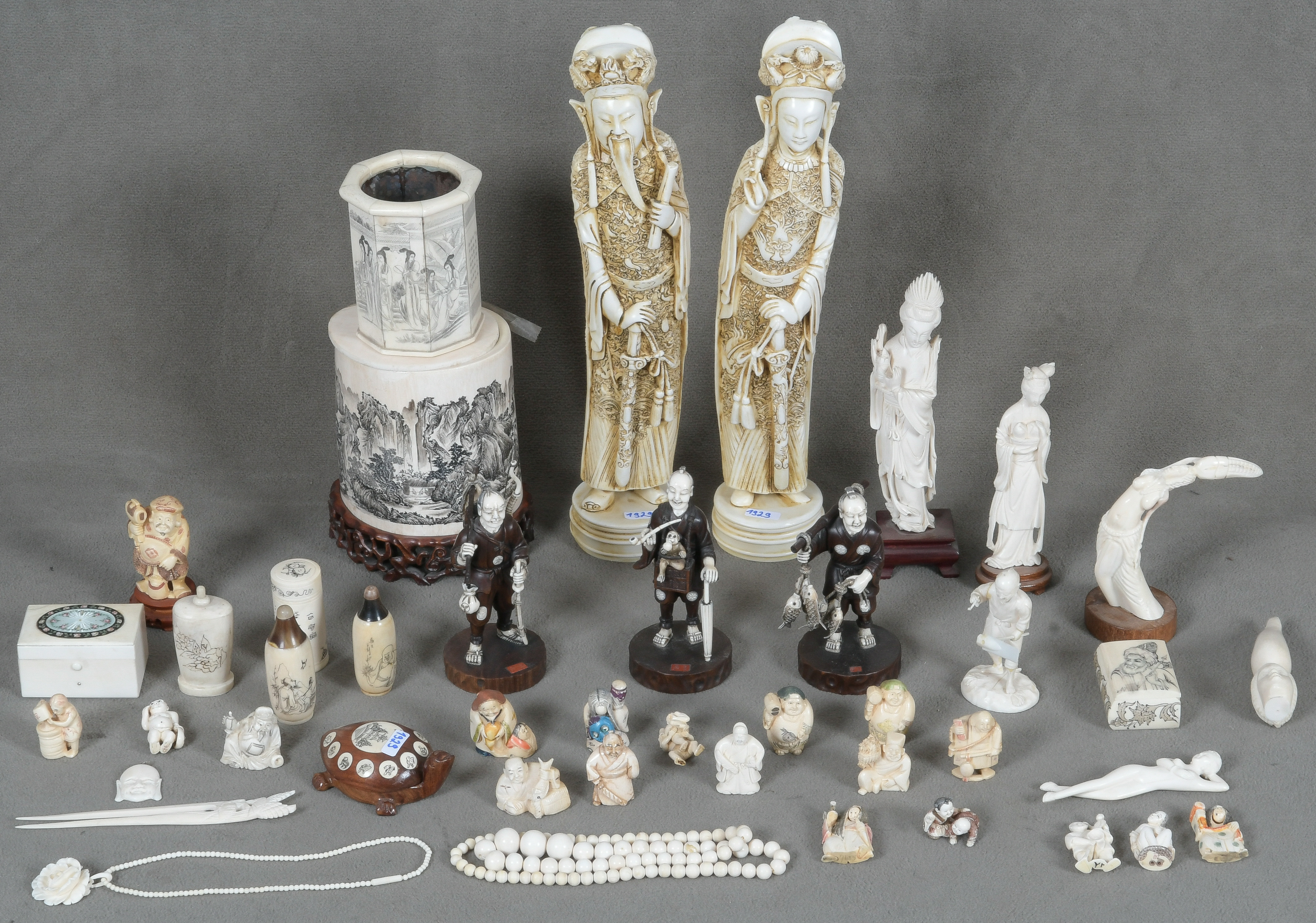 - Katalog-Nr: 1929Großes Konvolut Dosen, Figuren, Schmuck und Tabatièren. Asien. Meist Kunstmasse, H=2 bis 40 cm.o.L.