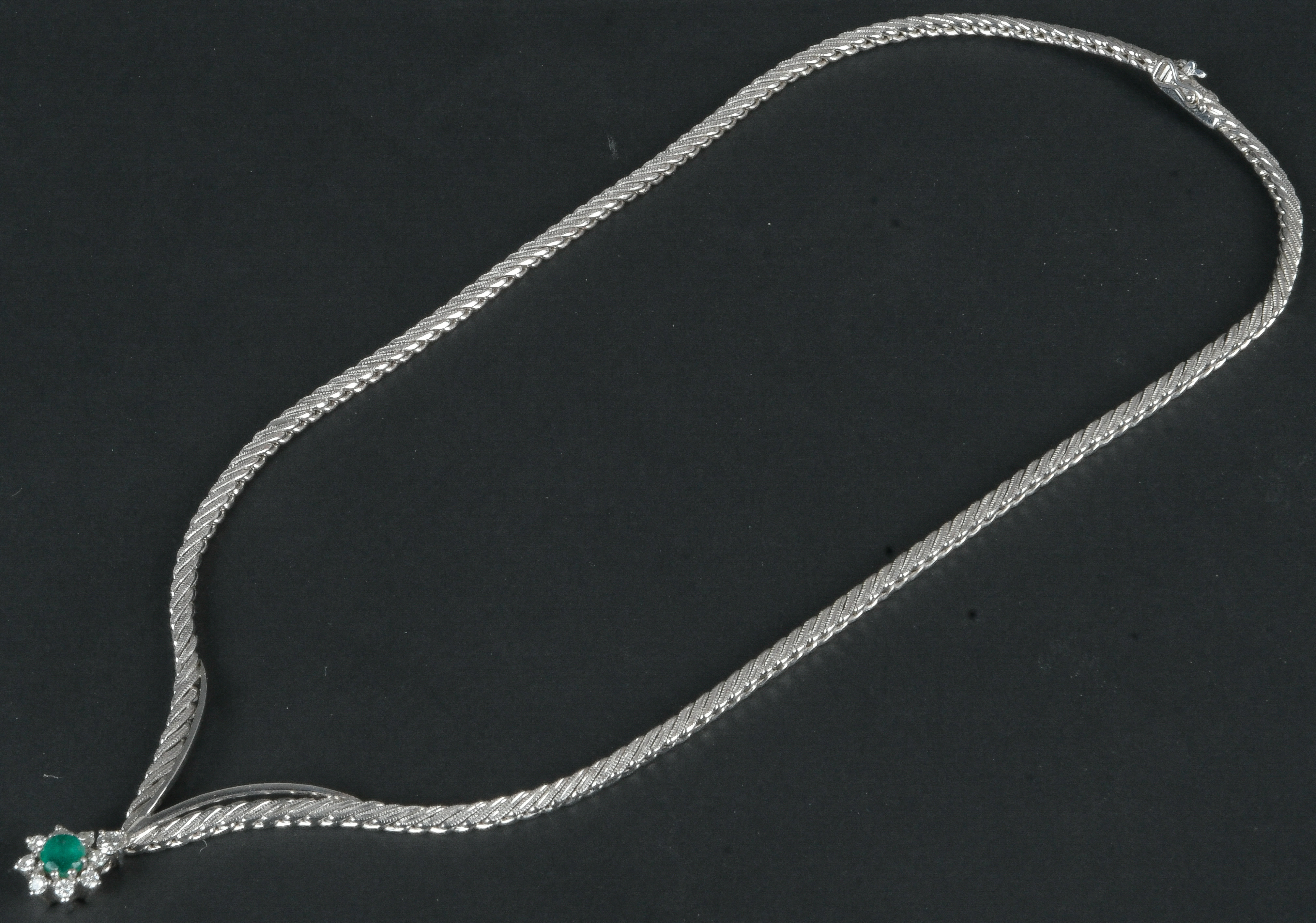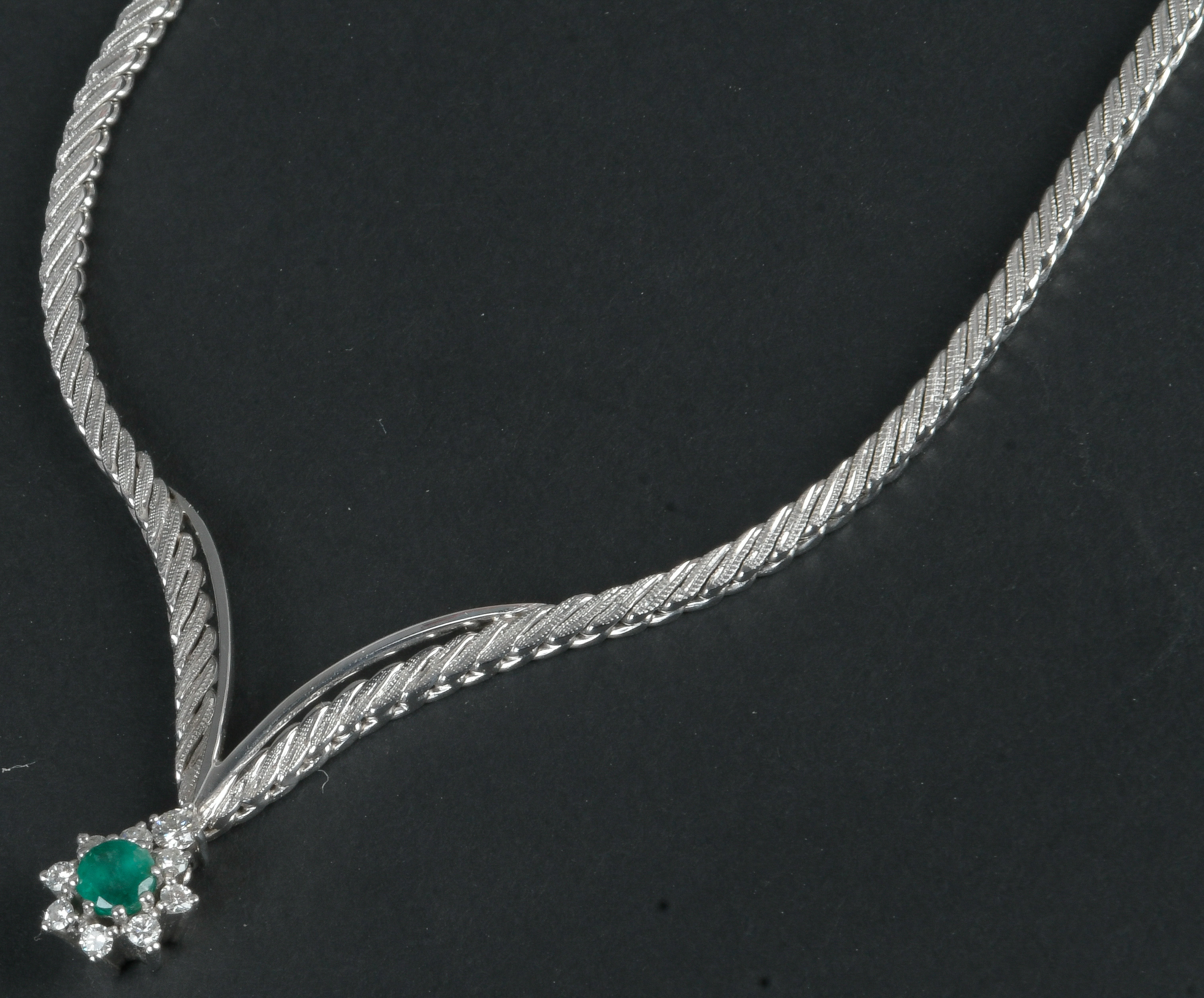 - Katalog-Nr: 1936Collier. 18 kt Gold, besetzt mit Brilanten, ca. 0,25 ct, und Smaragd, Gesamtgewicht ca. 38 g, L=44 cm.o.L.