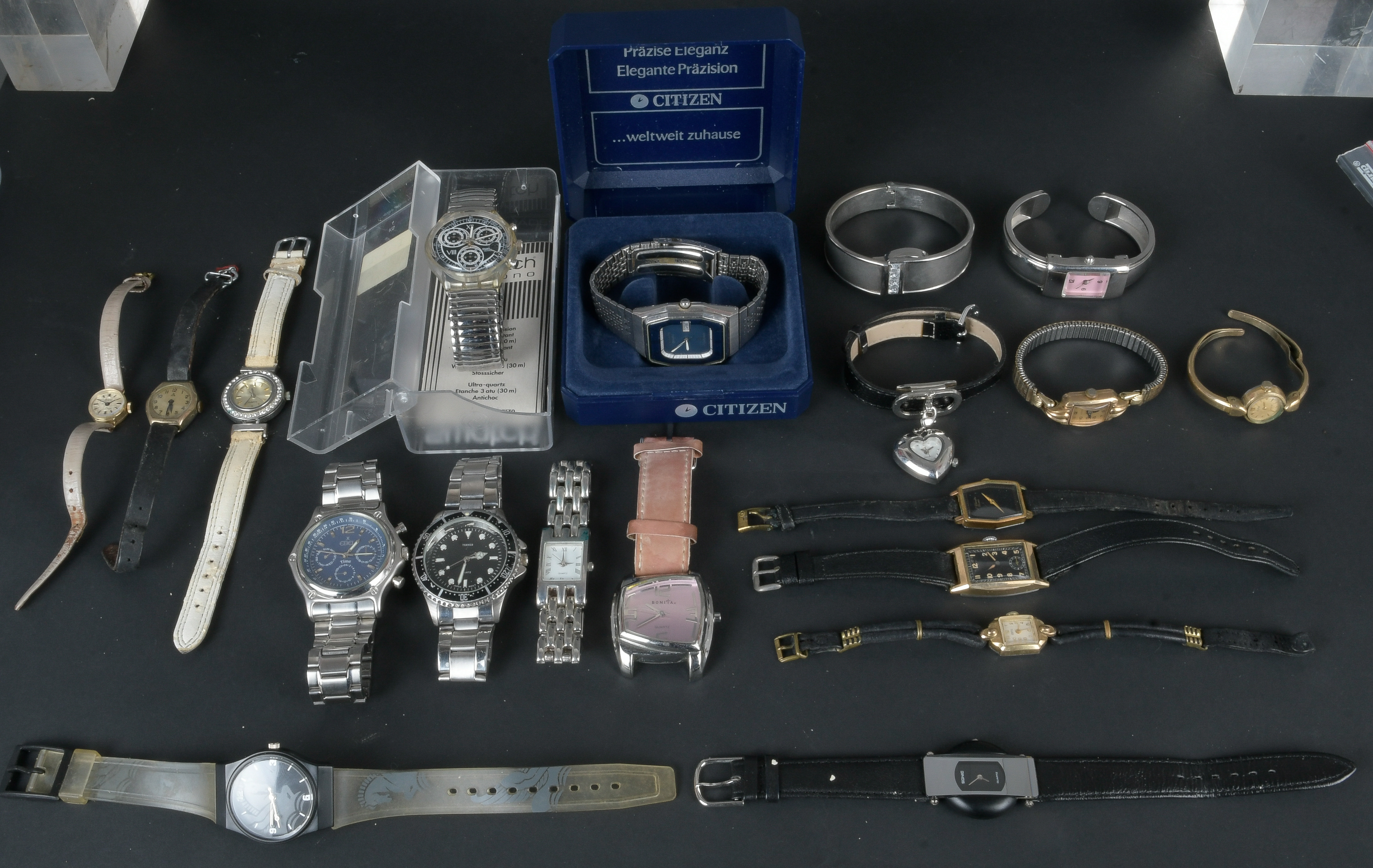 - Katalog-Nr: 1938Konvolut Armbanduhren, u.a. „Citizen“, „Bonita“, „Orno“ und „Terner“. (Funktion ungeprüft)o.L.